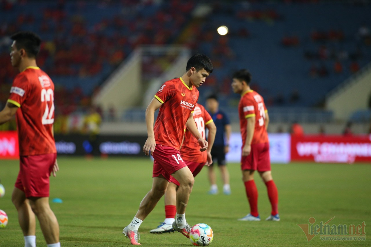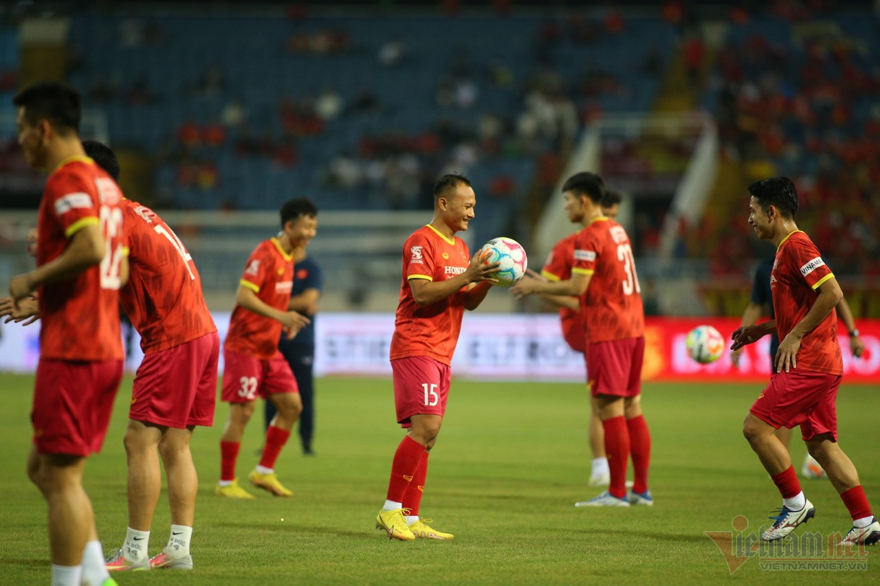 Các cầu thủ Việt Nam khởi động trước trận đấu