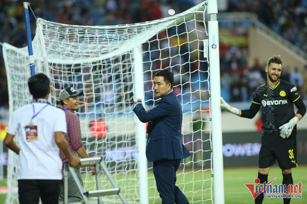 Tuấn Hải được giao trọng trách đá quả 11m nhưng anh chưa thể thực hiện do sự cố hi hữu khi xà ngang khung thành bên phía Dortmund bị bật ra và cao hơn bình thường sau tác động của thủ môn Lotka. Trọng tài cho trận đấu tạm dừng để nhân viên SVĐ Mỹ Đình vào xử lý.