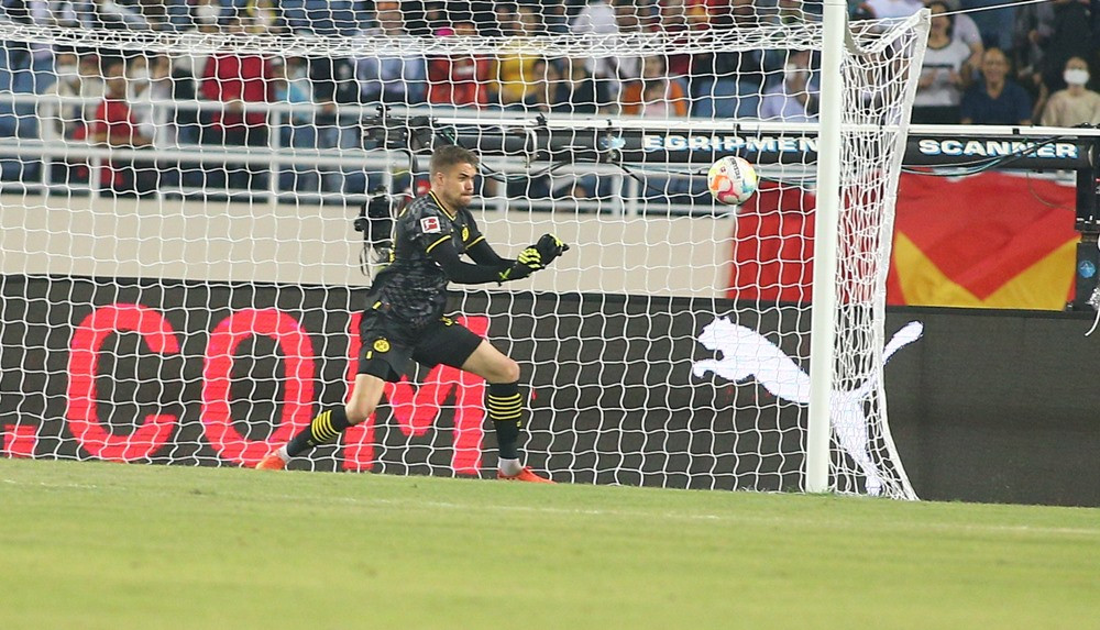 Văn Toàn tranh chấp tốt, anh loại bỏ cả trung vệ Hummels trước khi dứt điểm buộc thủ môn của Dortmund phải trổ tài. Ngay sau đó đến lượt Tiến Linh kết thúc nhưng vẫn không thắng được thủ môn vào sân thay người, Lotka.
