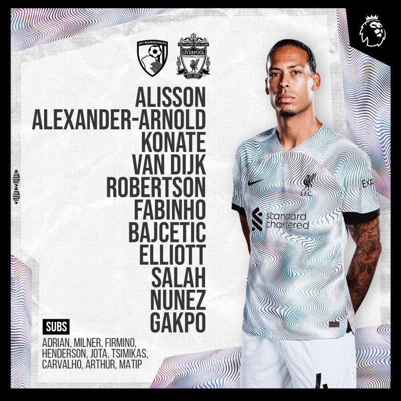 Liverpool: Alisson; Alexander-Arnold, Konate, Van Dijk, Robertson; Elliott (Jota 46'), Fabinho, Bajcetic; Salah, Gakpo, Nunez.