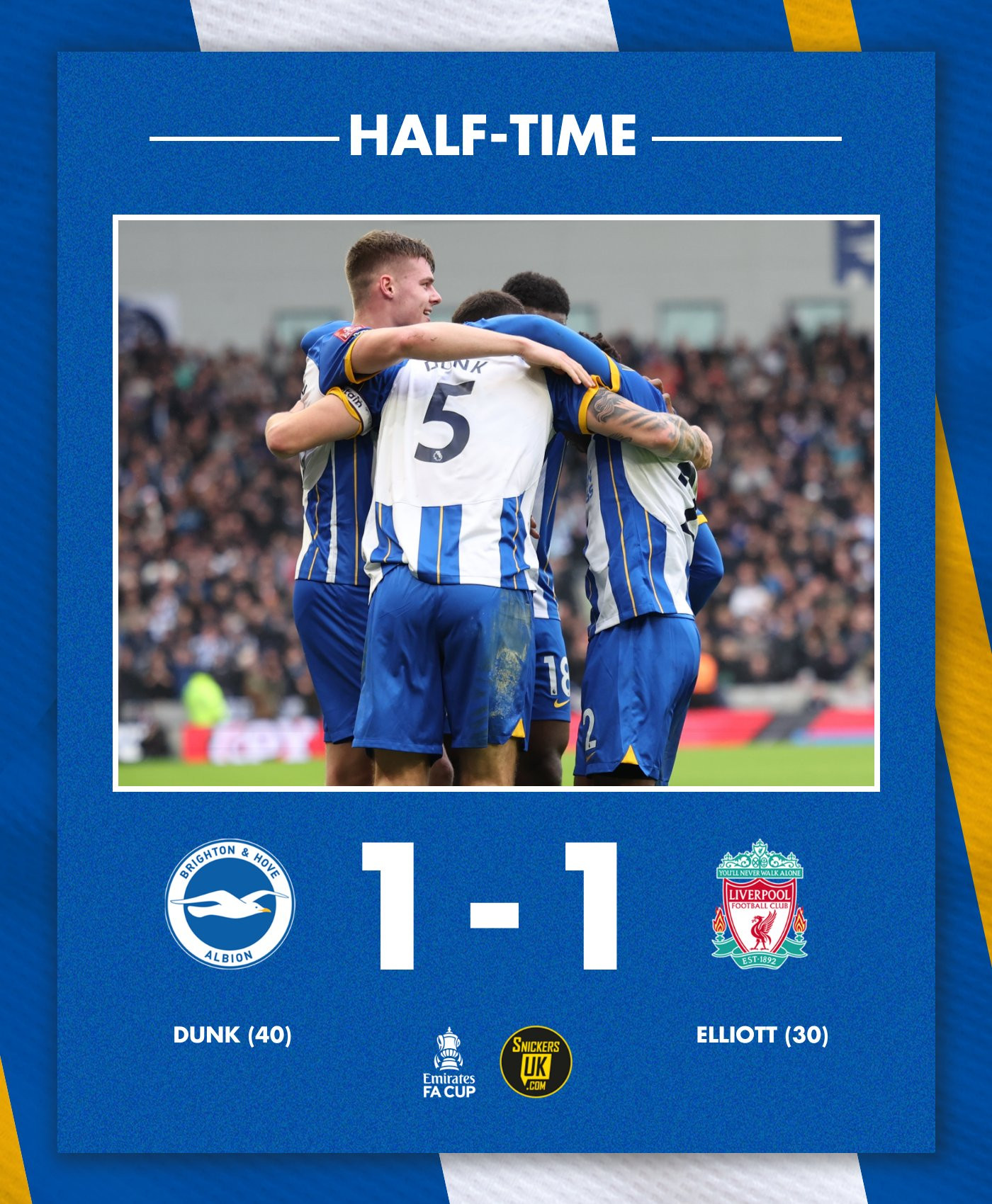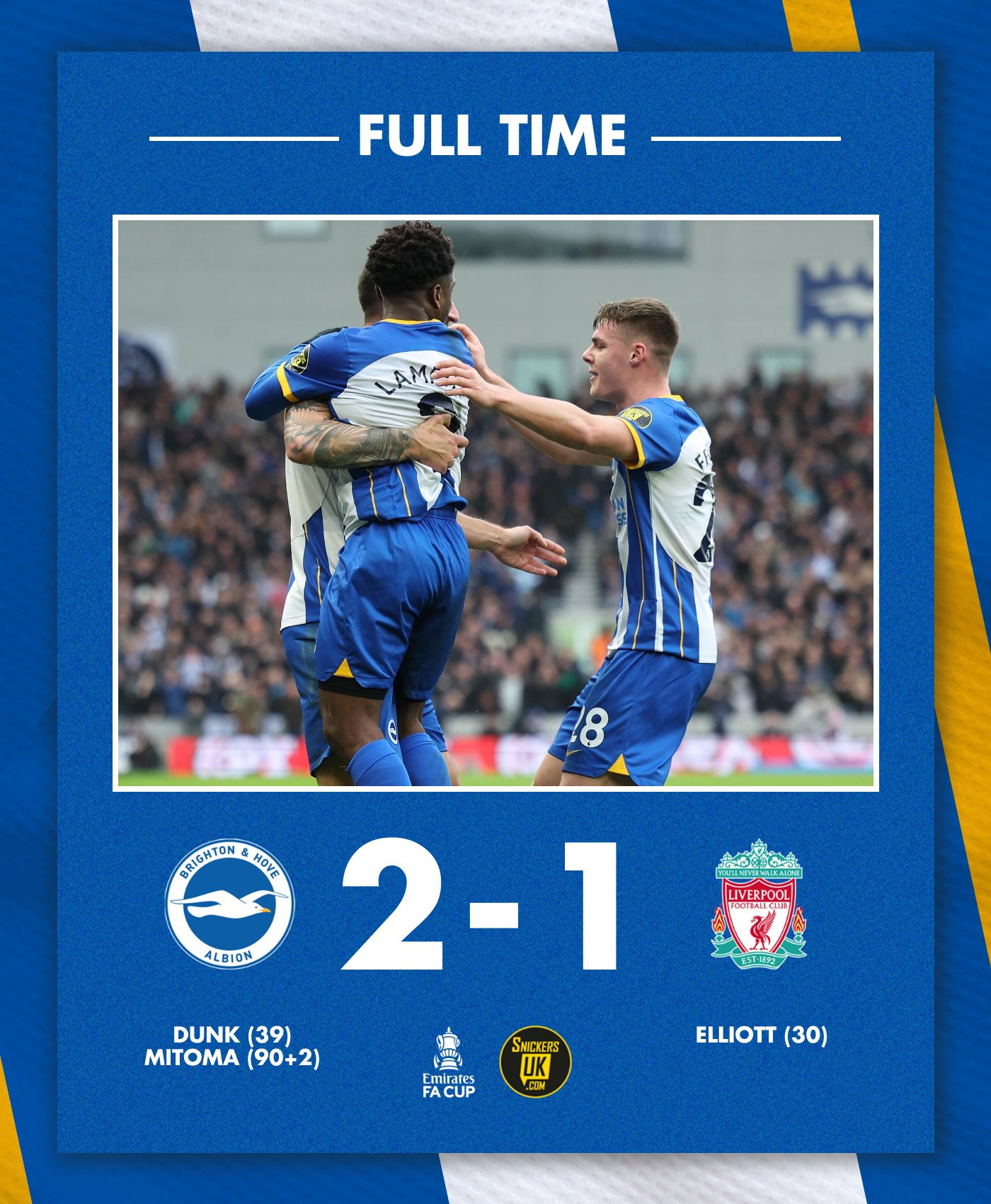 Bàn thắng: Dunk 39', Mitoma 90'+2 - Elliott 31'