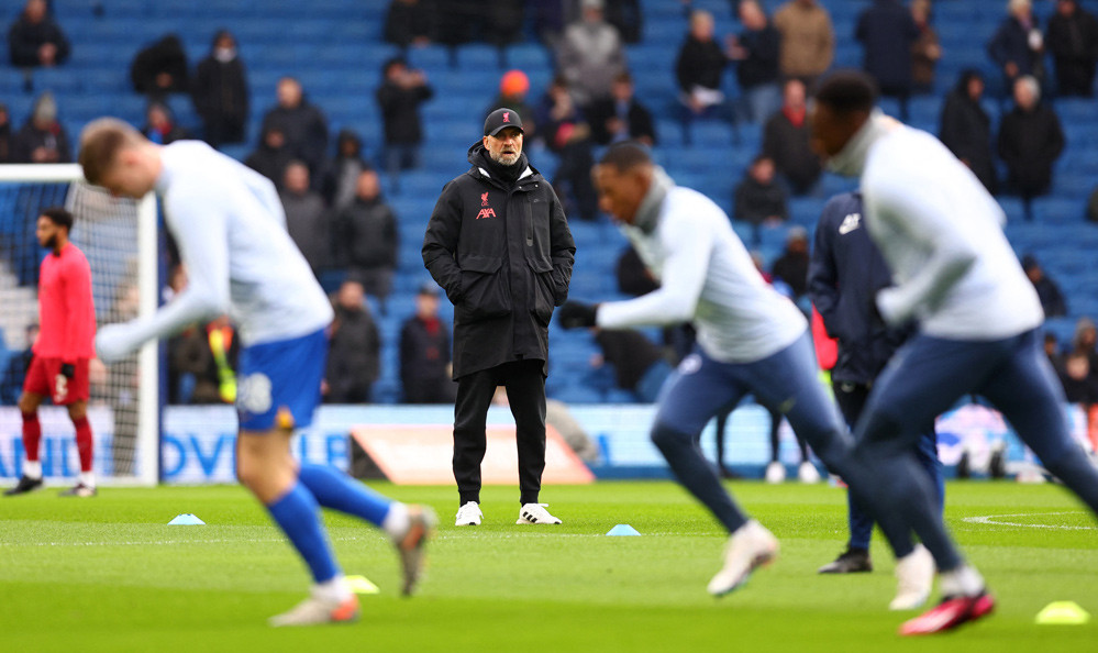 Các cầu thủ Brighton tích cực pressing tầm cao khiến Liverpool gặp khó khăn trong việc triển khai thế trận.
