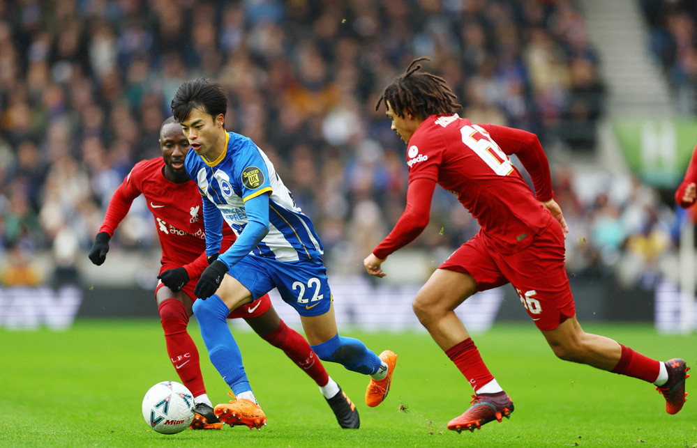 Bàn thắng (2-1, Mitoma): Estupinan tạt vào vòng cấm để Mitoma xử lý hai nhịp tinh tế trước khi dứt điểm tung nóc lưới Liverpool ở cự ly gần.