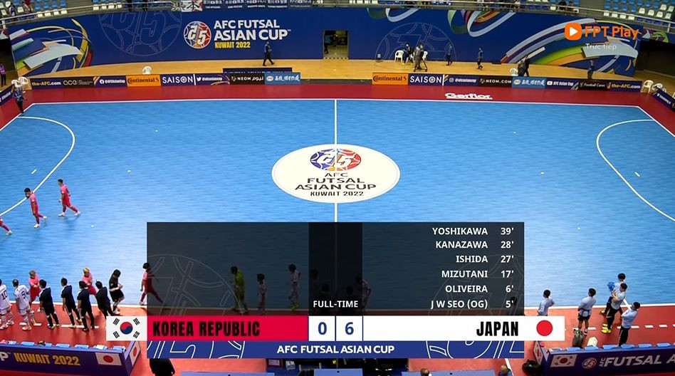 Trong hiệp hai, ĐT futsal Nhật Bản còn ghi thêm 3 bàn nữa nhờ công của Ishida (27'), Kanazawa (28') và Yoshikawa (39').