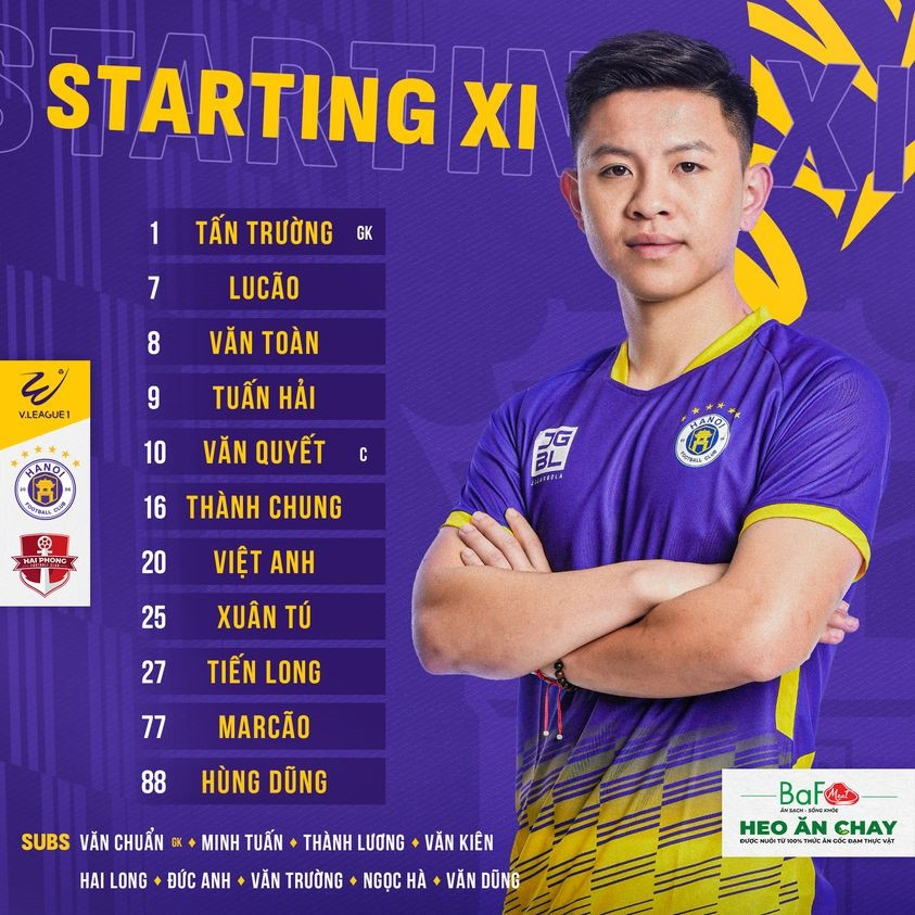 Đội hình xuất phát Hà Nội vs Hải Phòng