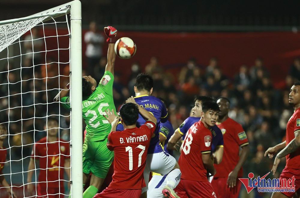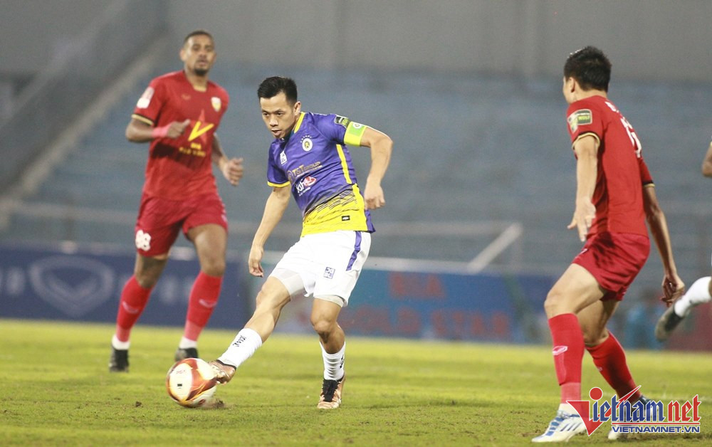 Dù phải làm khách nhưng Hà Nội FC nhập cuộc đầy chủ động, Văn Quyết và các đồng đội sớm triển khai thế trận tấn công.
