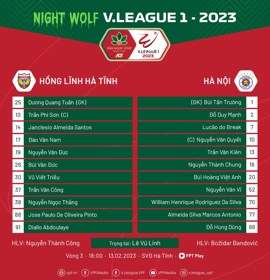 Hà Tĩnh: Quang Tuấn (25), Văn Nam (17), Janclesio (14), Viết Triều (30), Bùi Văn Đức (26), Nguyễn Văn Đức (19), Ngọc Thắng (38), Văn Công (37), Phi Sơn (10), Jose Pinto (88), Diallo (91)
