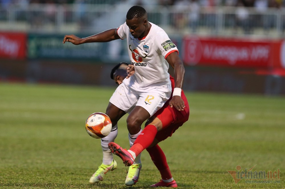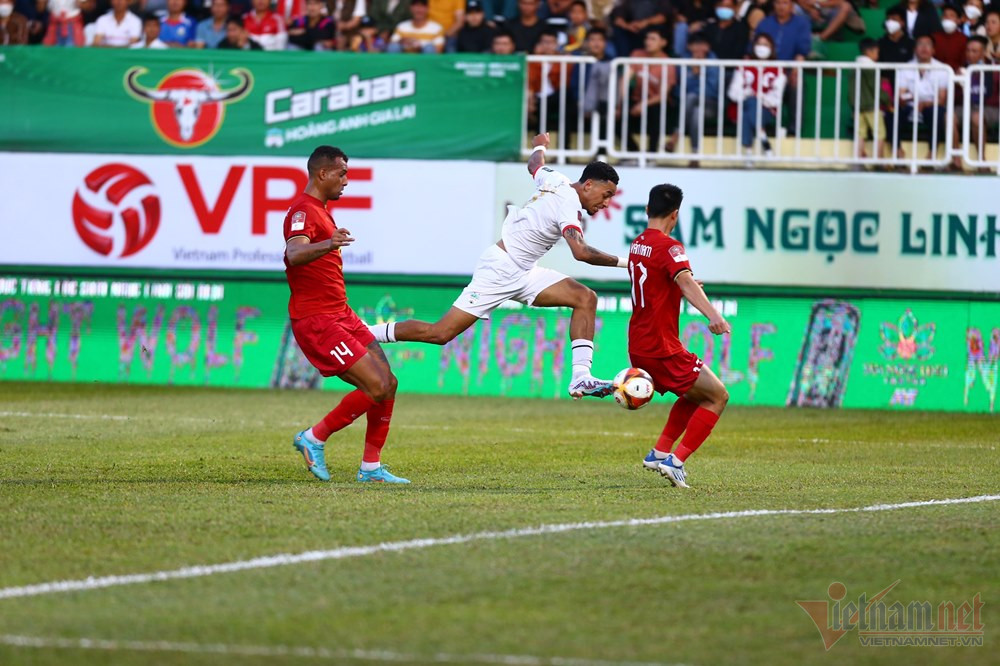 Minh Vương thả bóng rất thuận lợi vào vòng cấm cho Paollo Oliveira, anh khống chế một nhịp rồi dứt điểm hơi hiền.