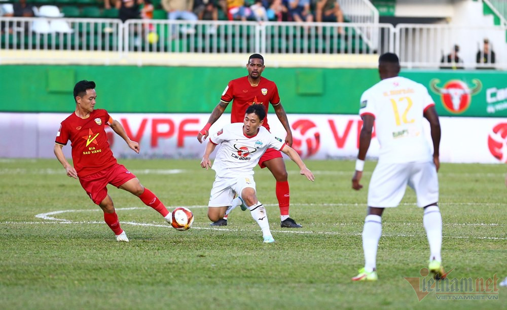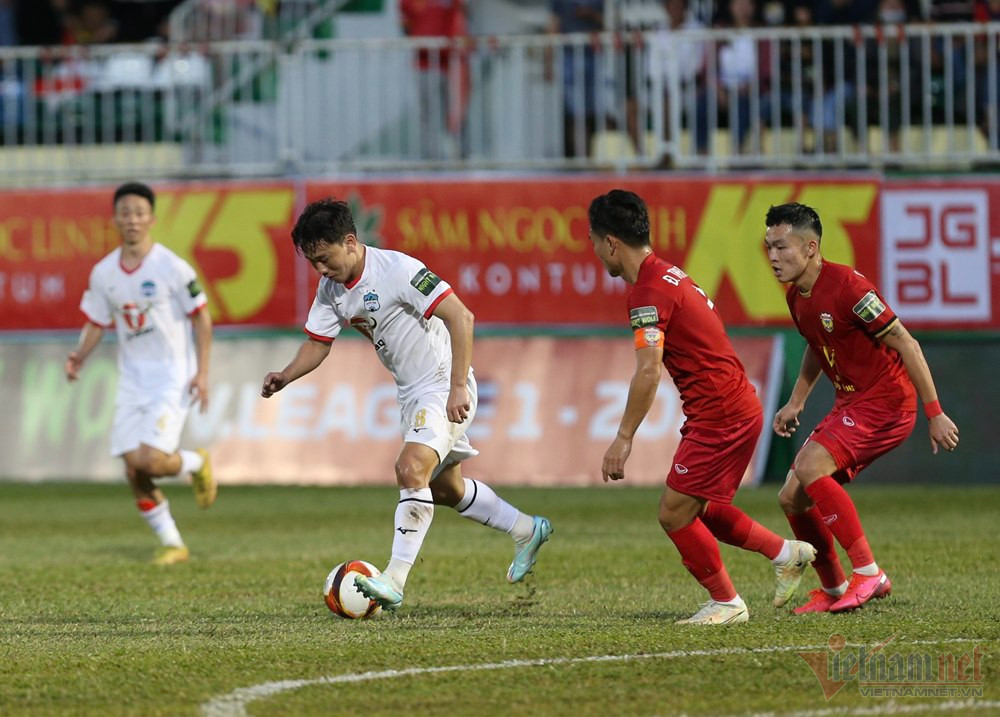 Các học trò của HLV Nguyễn Thành Công vẫn đang tổ chức phòng ngự kín kẽ trước sức ép của HAGL.