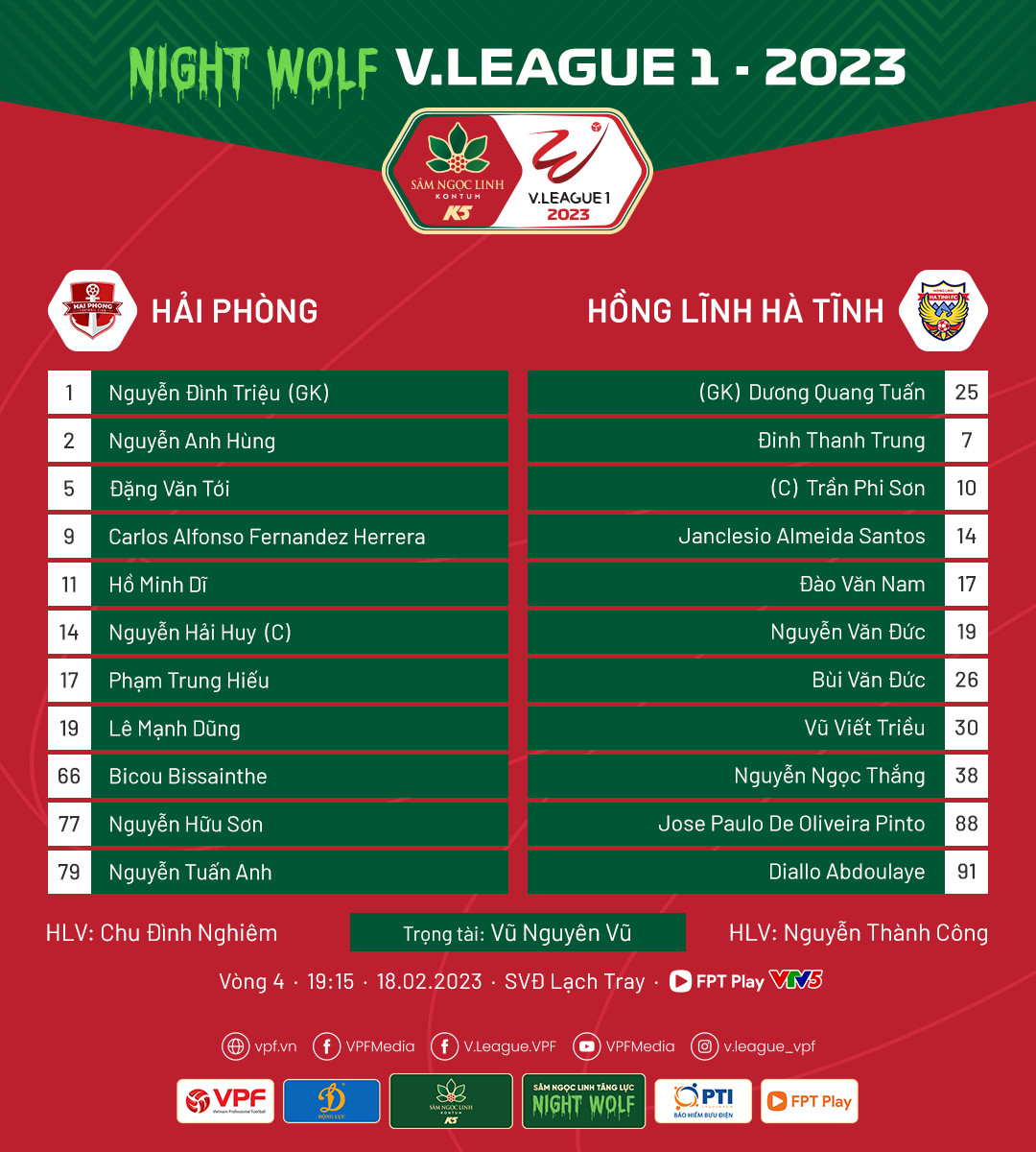 Đội hình xuất phát Hải Phòng vs Hà Tĩnh
