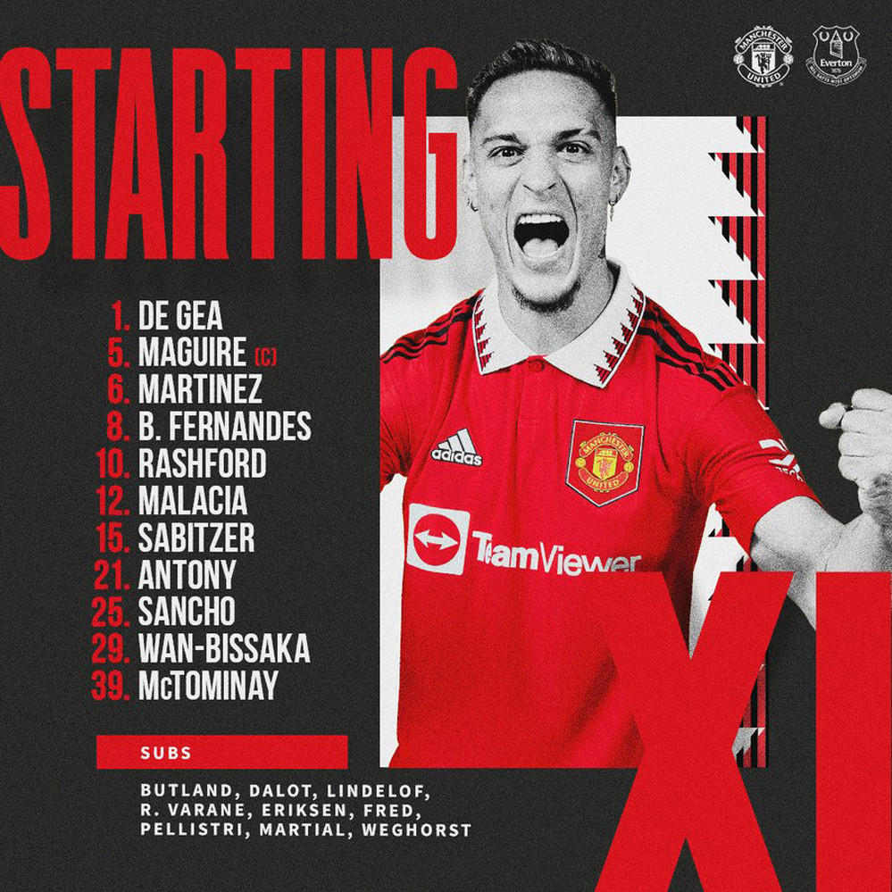 MU: De Gea, Wan-Bissaka, Maguire, Martinez, Malacia, McTominay, Sabitzer, Antony, Fernandes, Rashford, Sancho.