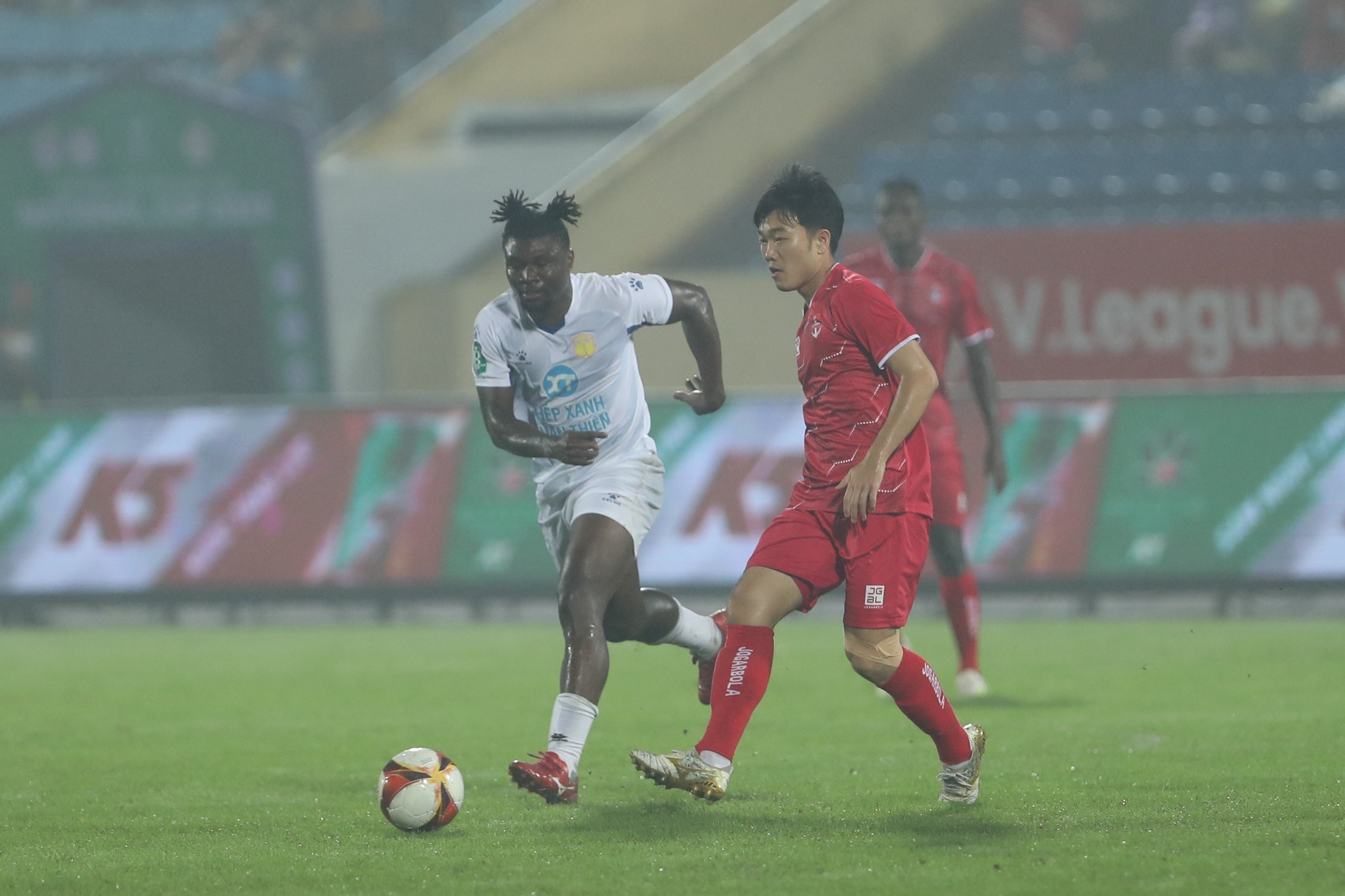 Xuất phát từ pha phản công sắc nét, Nnamani xâm nhập vòng cấm và đón đường chuyền của đồng đội trước khi tung chân bắt vô-lê đẹp mắt cháy lưới Đình Triệu.