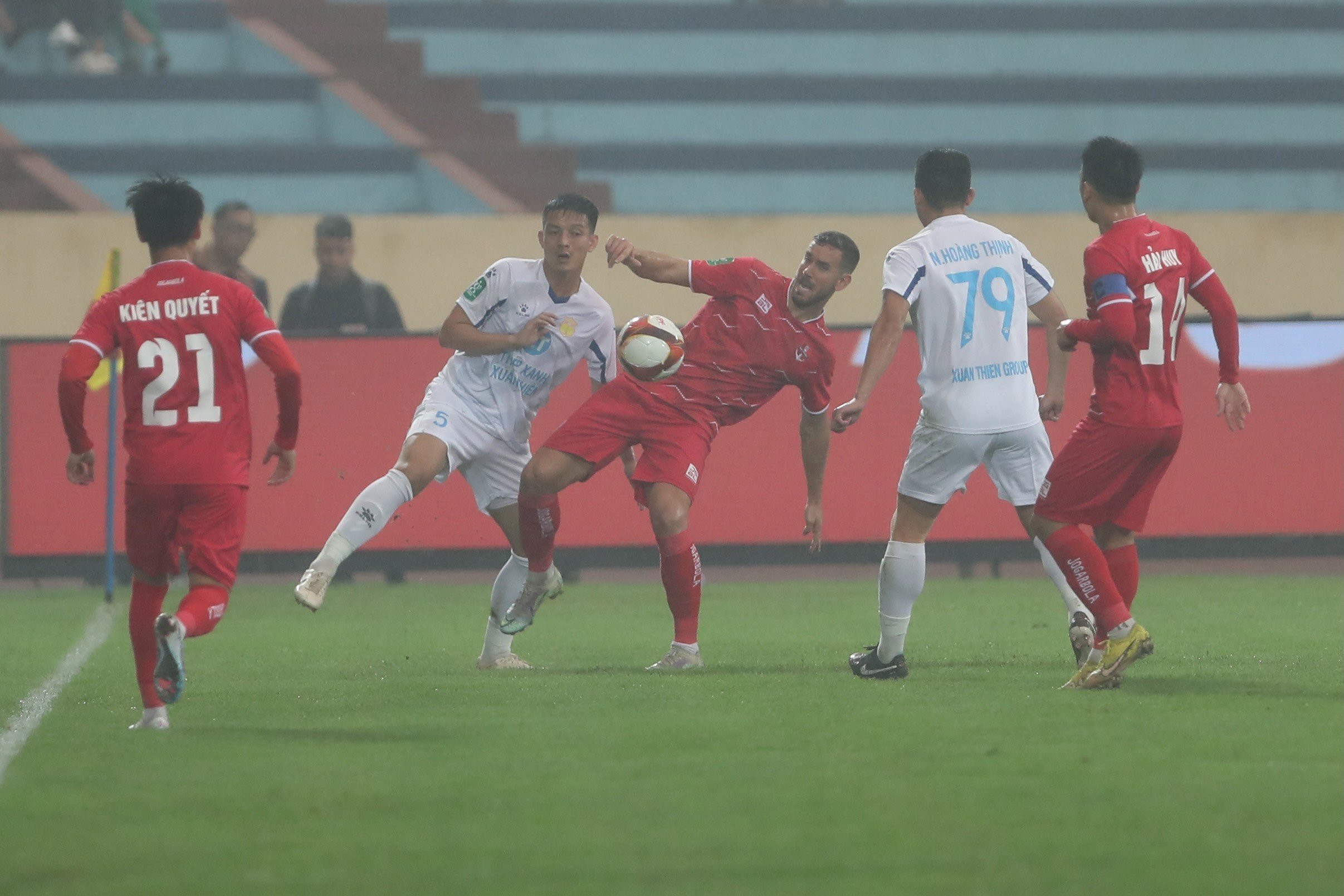 Hải Phòng đáp trả mạnh mẽ, cũng từ một pha không chiến khi Carlos Fernandez Herrera đánh đầu tầm thấp đưa bóng đi chệch cột dọc khung thành Nam Định.