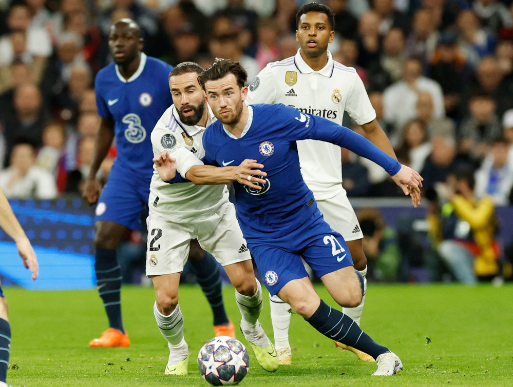 Reece James lao lên bên cánh phải rồi căng ngang để Sterling đệm cận thành. May cho Real Madrid là Courtois bay người cứu thua ngoạn mục.