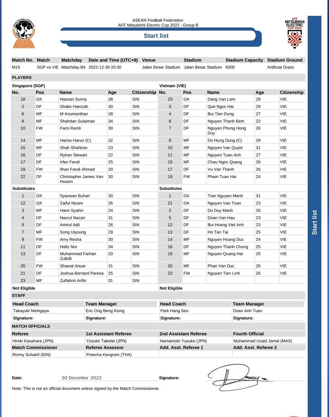 Đội hình xuất phát Singapore vs Việt Nam