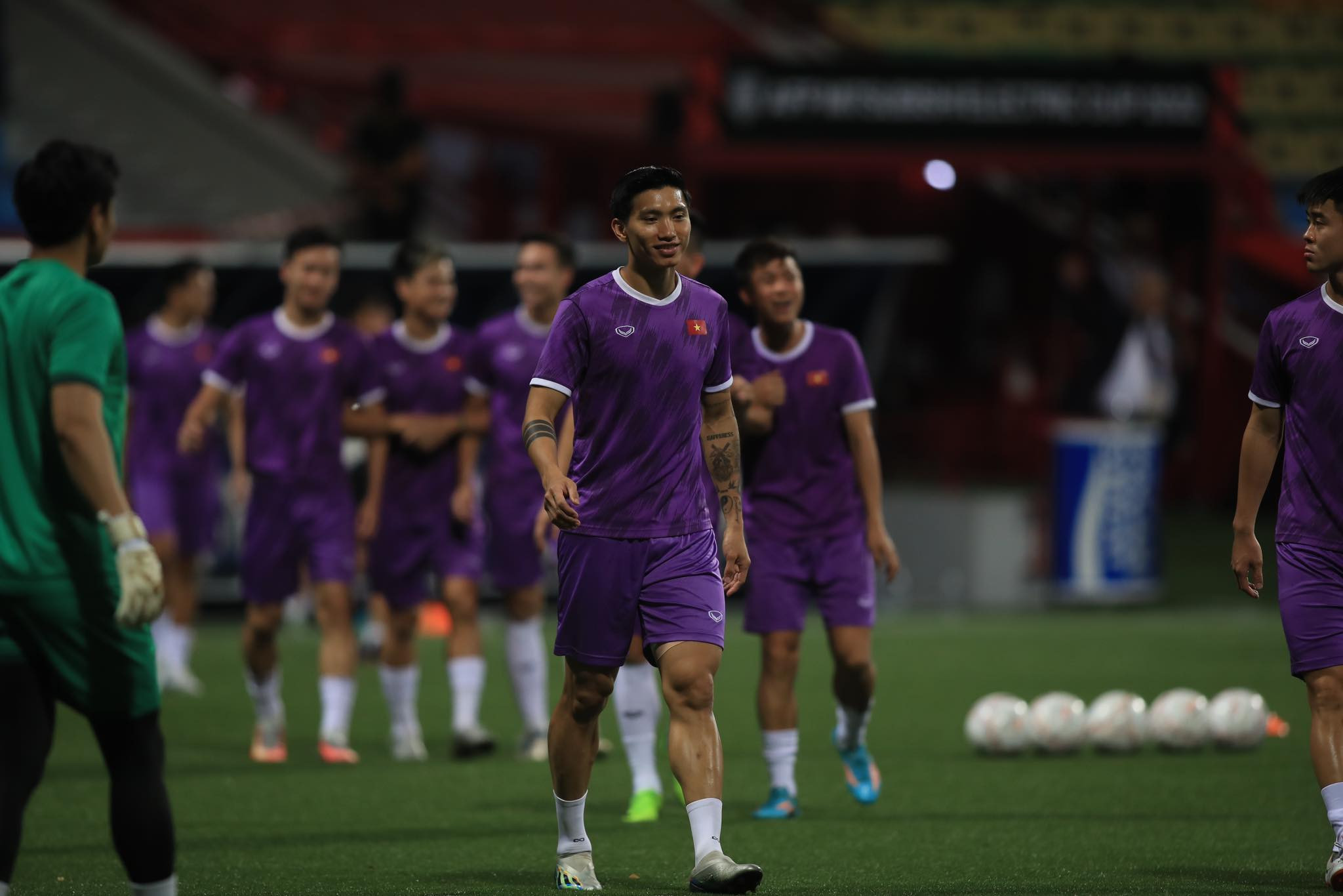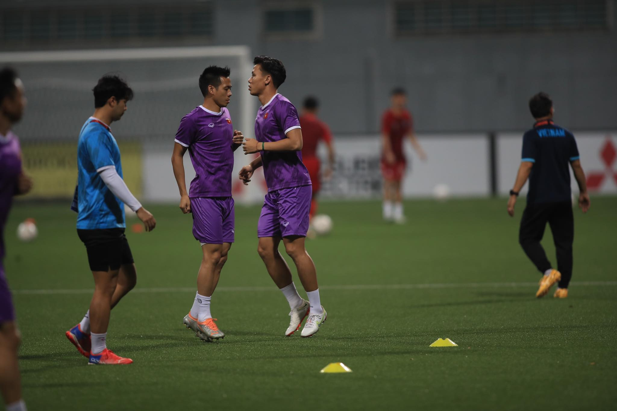 Các tuyển thủ Việt Nam khởi động trước trận đấu
