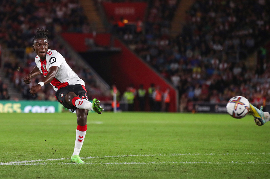 Trung vệ Koulibaly trở lại đội hình Chelsea sau án treo giòPhút 24, Sterling chớp thời cơ rất nhanh mở tỷ số cho ChelseaSterling đang đạt phong độ cao trong màu áo mớiTuy nhiên, niềm vui của Chelsea chỉ kéo dài đúng 4 phút. Lavia kết thúc căng đầu vòng cấm quân bình tỷ số 1-1Tiền vệ 18 tuổi ăn mừng bàn thắng đầu tiên ở Ngoại hạng AnhPhút cuối cùng hiệp 1, Adam Amstrong dứt điểm chân trái giúp Southampton dẫn trước 2-1Đồng đội chia vui với Adam AmstrongSang hiệp hai, HLV Tuchel xua quân lên tấn công tìm bàn gỡSouthampton phòng ngự hết sức kiên cườngThủ quân Azpilicueta thi đấu không tốtKhông thể ghi bàn thứ hai, Chelsea chấp nhận phơi áo tại St Mary'sSouthampton giành chiến thắng xứng đáng