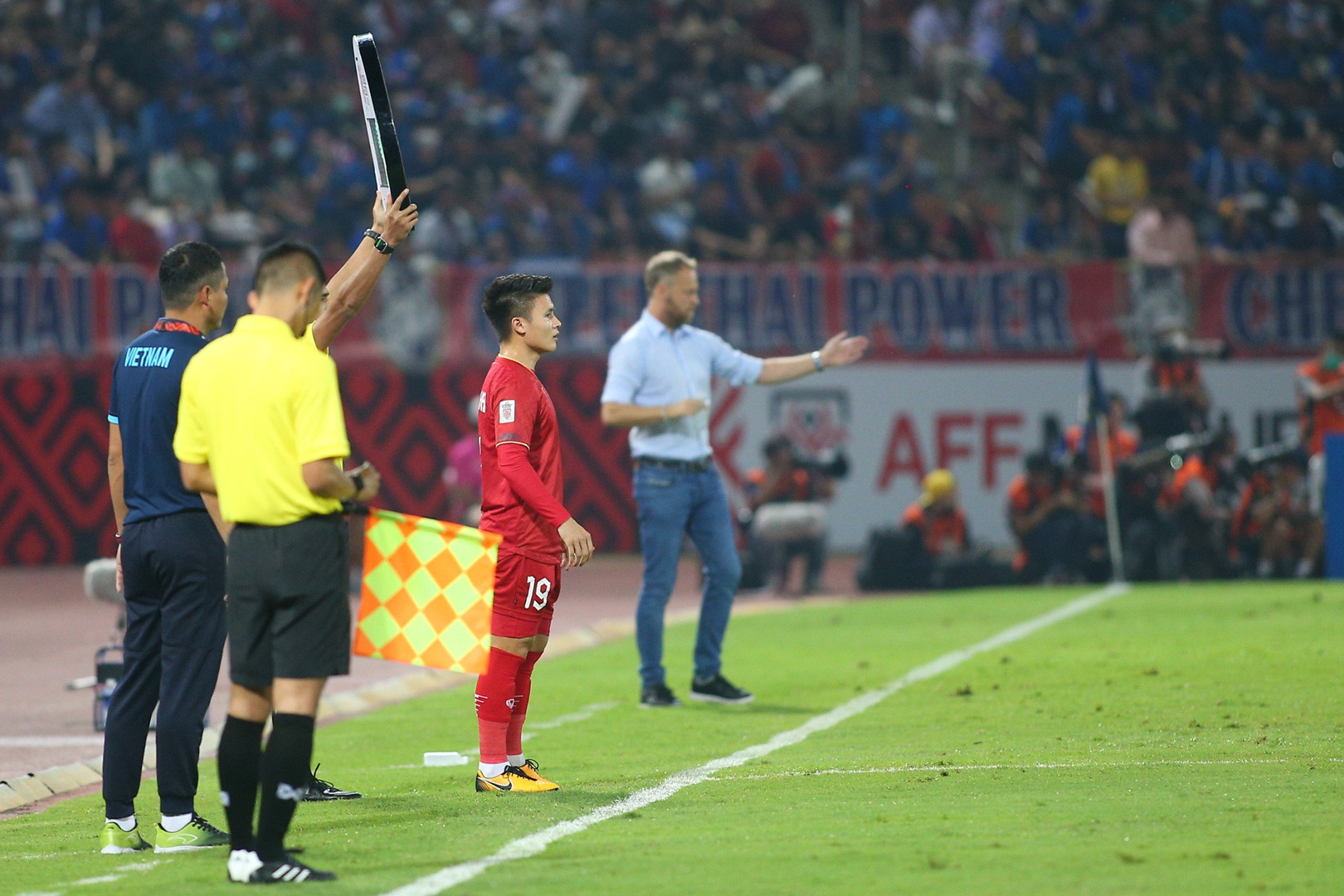 HLV Park Hang Seo rút Tuấn Anh ra và đưa Quang Hải vào thế chỗ.