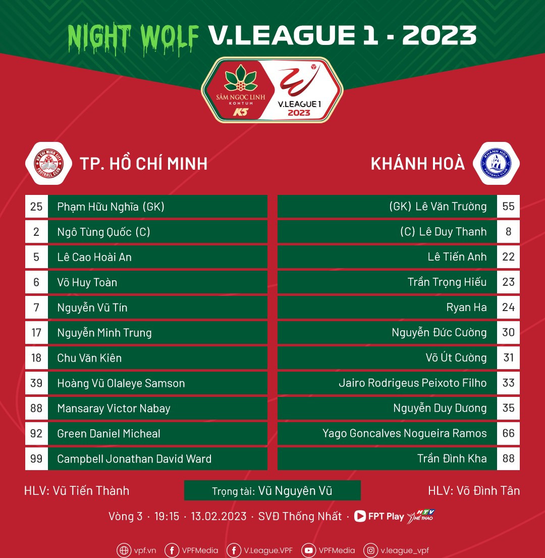 Đội hình xuất phát TPHCM vs Khánh Hòa