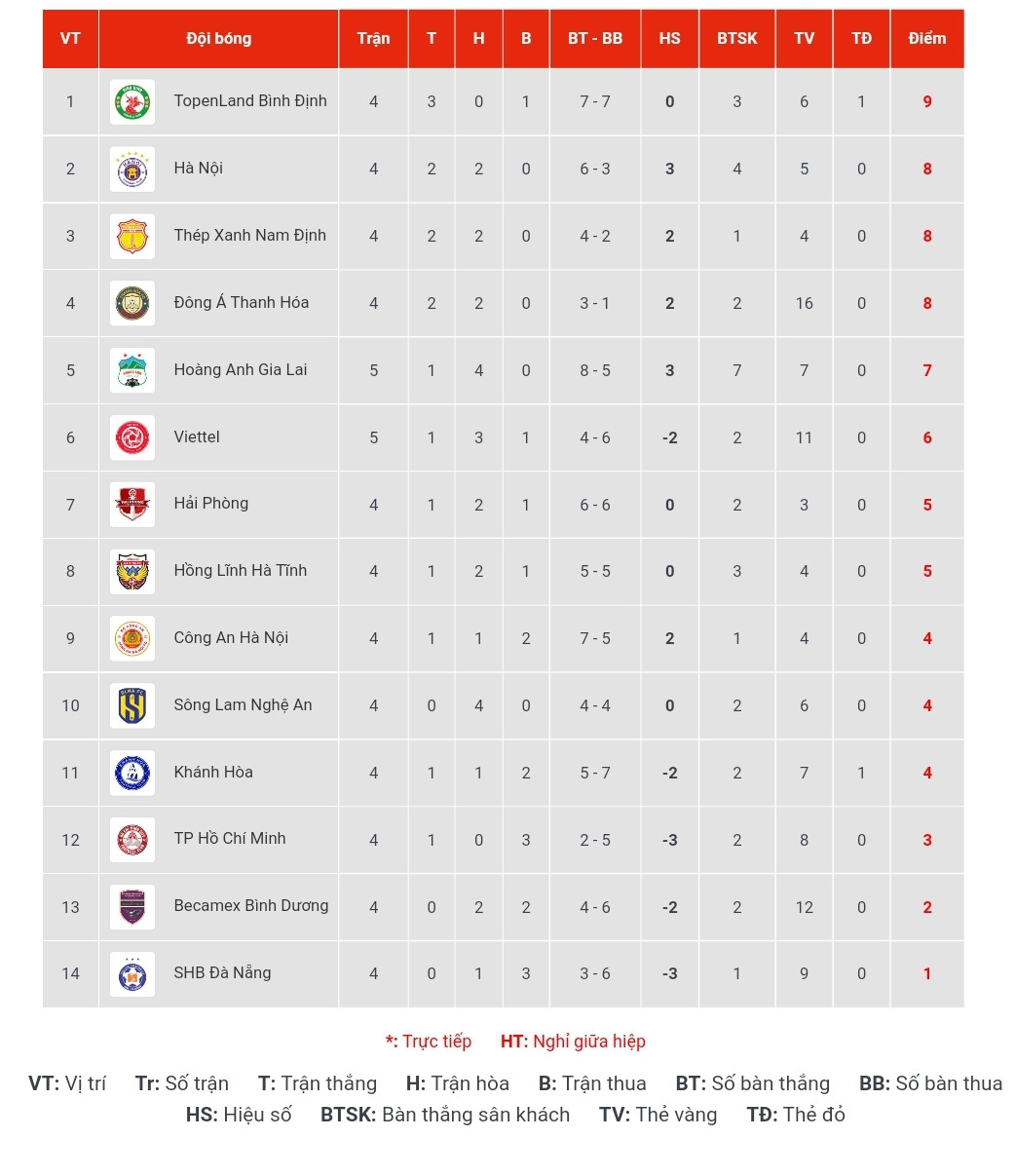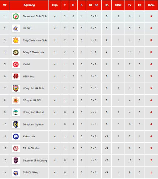 Bảng xếp hạng V-League 2023