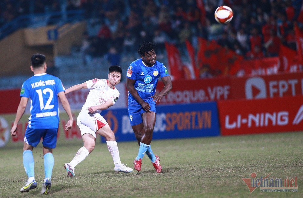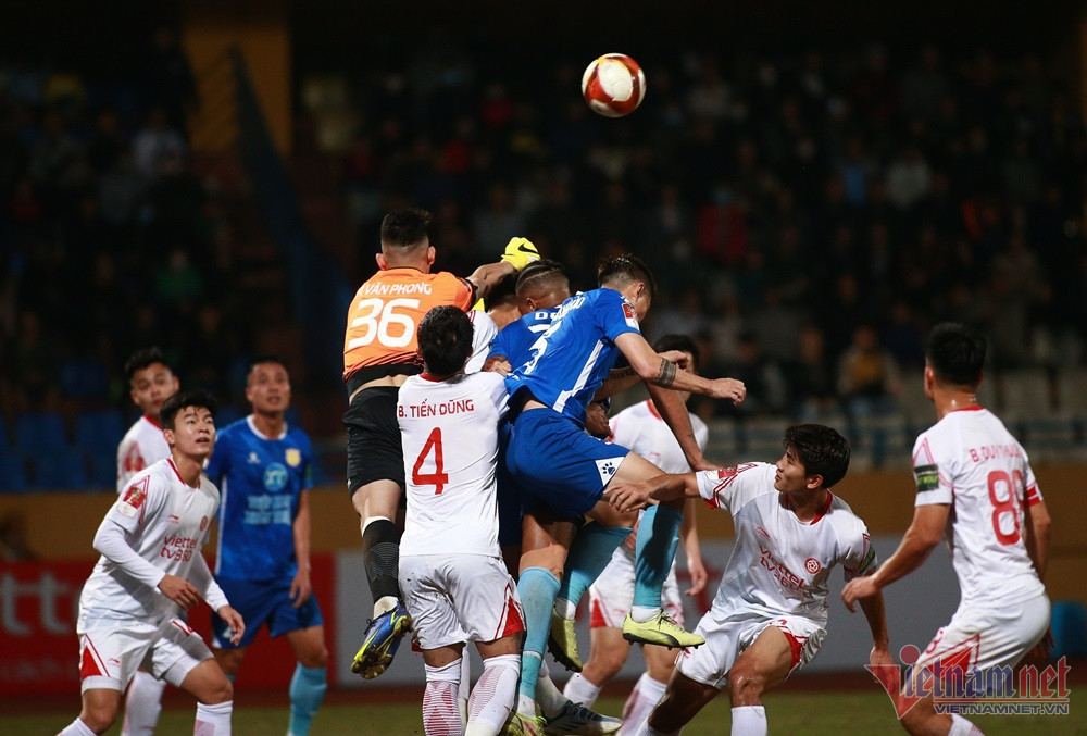 Hoàng Đức chạm bóng đầy tinh tế cho Jeferson băng xuống đối mặt với Nguyên Mạnh. May cho Nam Định khi cú lốp bóng của tiền đạo Viettel lại đưa bóng đi hơi cao.