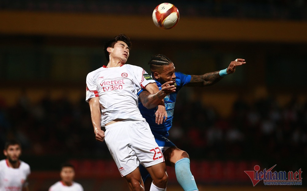 Một cơ hội từ tình huống cố định của Viettel, cú đánh đầu của trung vệ đội trưởng Bùi Tiến Dũng đưa bóng đi vọt xà ngang khung thành Nguyên Mạnh.