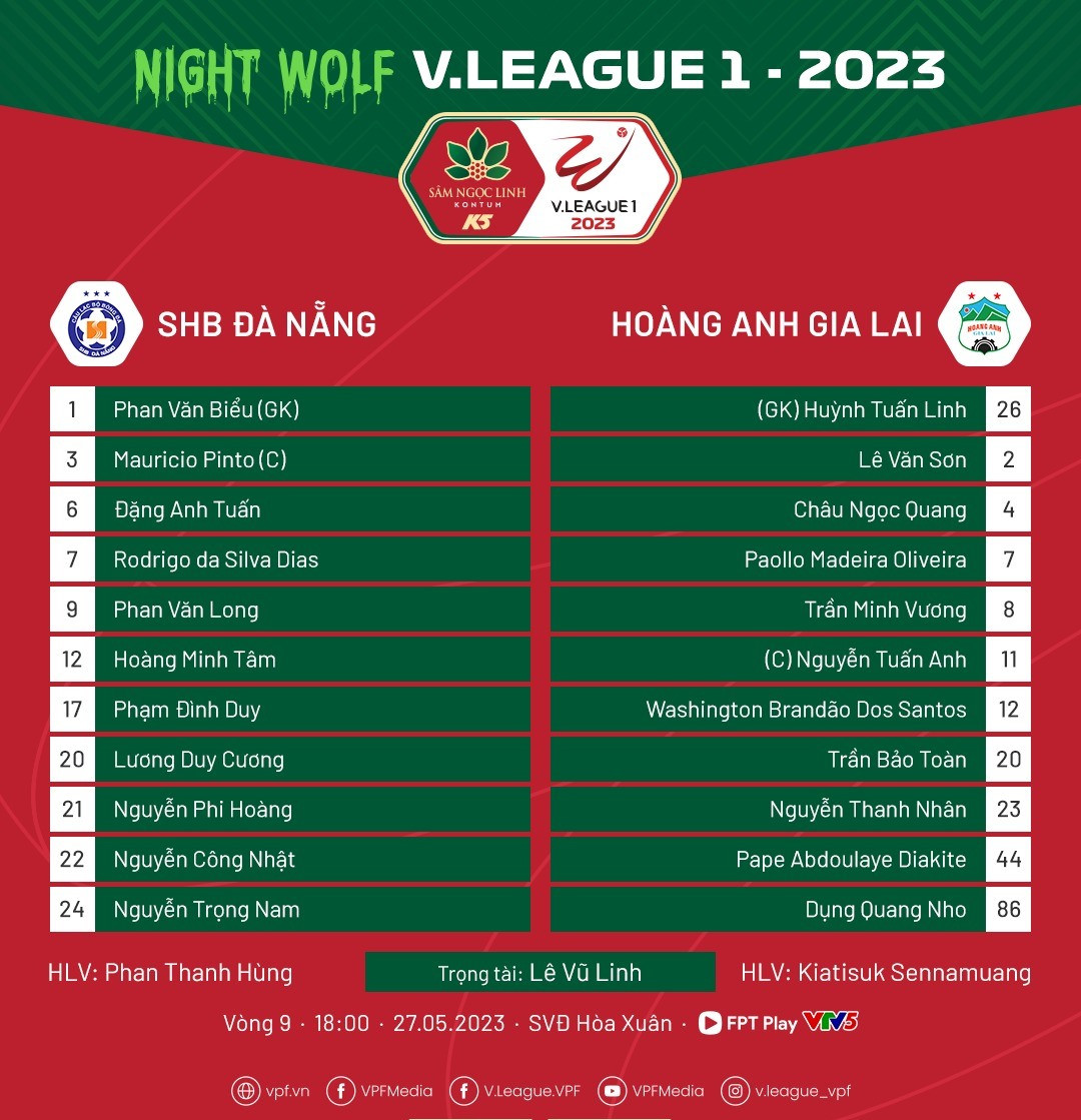 Đội hình xuất phát Đà Nẵng vs HAGL