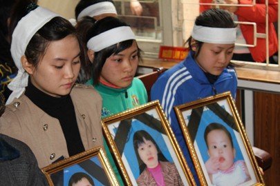 Họ mang theo di ảnh của nạn nhân xấu số bị thiệt mạng, ảnh cháu Bích và ảnh gia đình nạn nhân ngày còn quây quần bên nhau.
