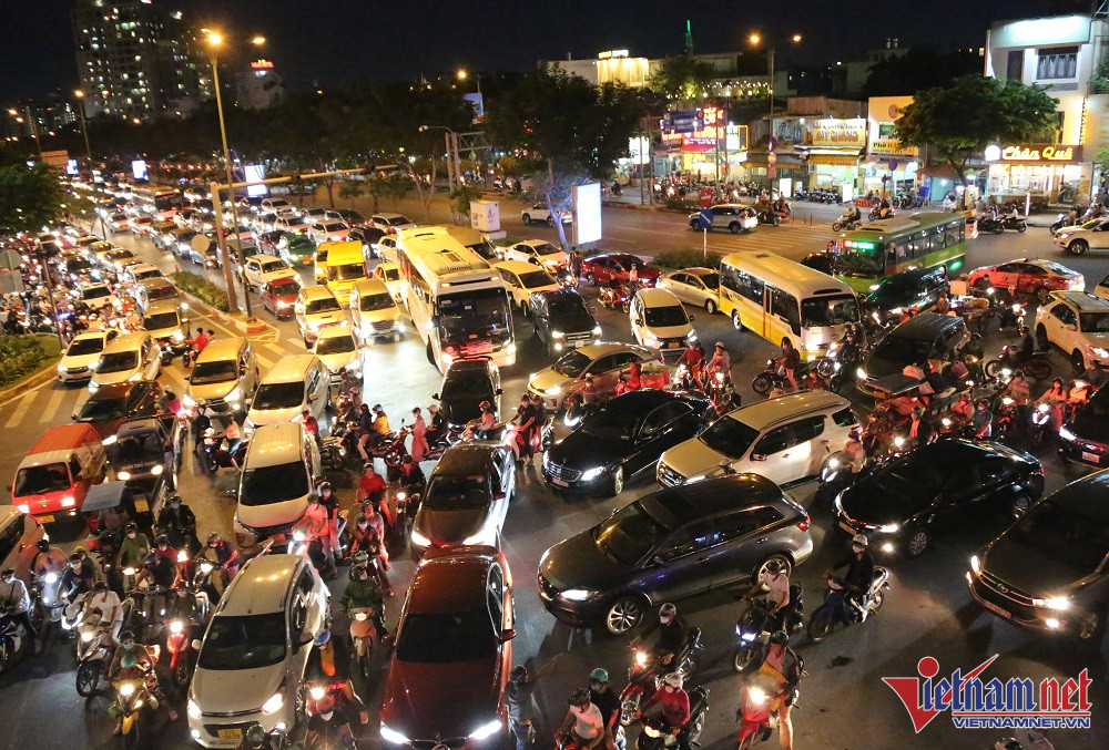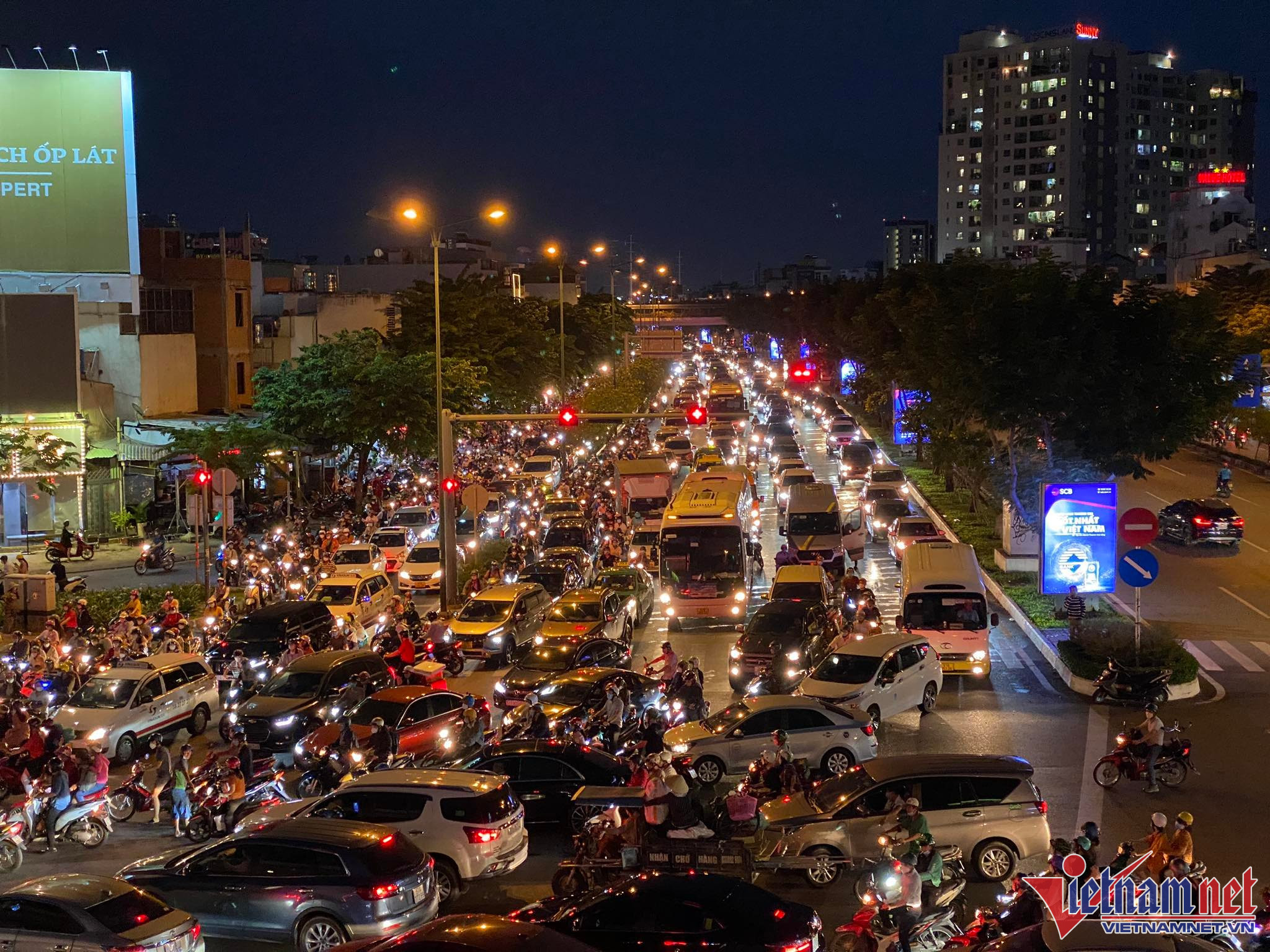 Các tuyến đường cửa ngõ sân bay Tân Sơn Nhất như Phạm Văn Đồng và khu vực vòng xoay Nguyễn Thái Sơn (quận Gò Vấp, TP.HCM) xảy ra kẹt xe nghiêm trọng vào tối cuối tuần.