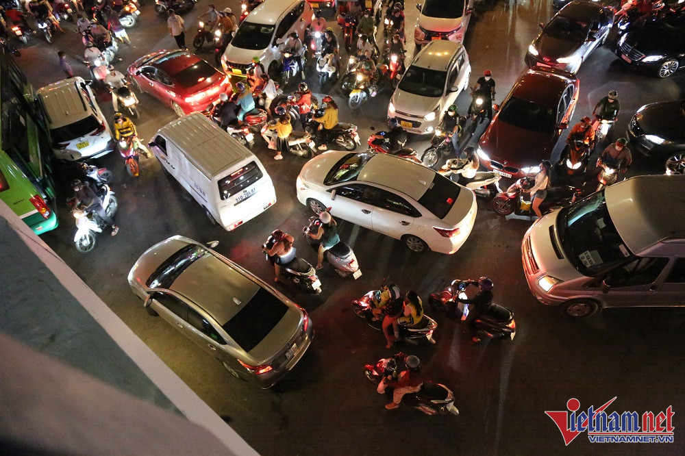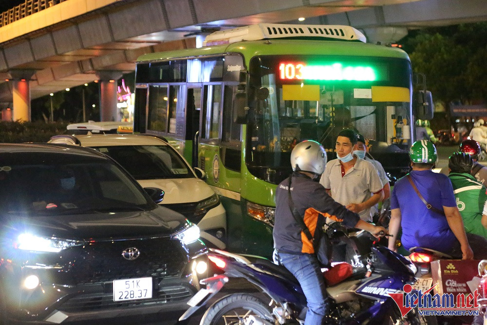 Người dân cho biết, tình trạng kẹt xe xảy ra từ 17h. Ô tô đậu kín, xếp thành 4-5 hàng trên đường Phạm Văn Đồng. Đường kẹt cứng khiến nhiều tài xế và hành khách ra sân bay đều sốt ruột, lo lắng và mệt mỏi.
