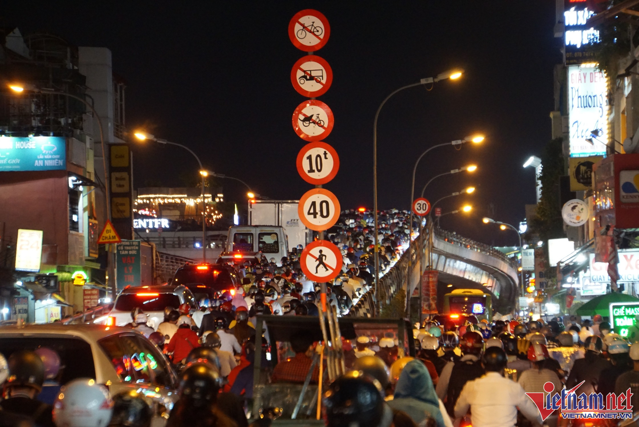 Kẹt xe nghiêm trọng xảy ra tại đoạn cầu vượt Nguyễn Thái Sơn về ngã 3 Mũi Tàu (đường Phạm Ngũ Lão, Q.Gò Vấp) kéo dài hơn 1km. Nhiều người đi đường tỏ ra mệt mỏi vì phải nhích từng mét trên đường về nhà.