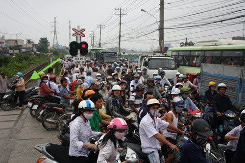 Hàng chục, thậm chí hàng trăm người nhốn nháo khi tiếng còi tàu vọng đến. Nhân viên gác chắn hết sức vất vả nhưng vẫn không sao hạ được chắn, bởi nhiều người thấy khu vực chắn trống trải đã liều mình vượt qua.