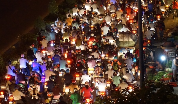 Tình trạng kẹt xe càng nghiêm trọng vào lúc 18h