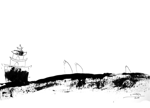 | Họa sĩ Lê Thiết Cương vẽ cho tập thơ của Kevin - Bức tranh mà Kevin đã thốt lên rằng chưa họa sĩ nào hiểu ông như thế. |
