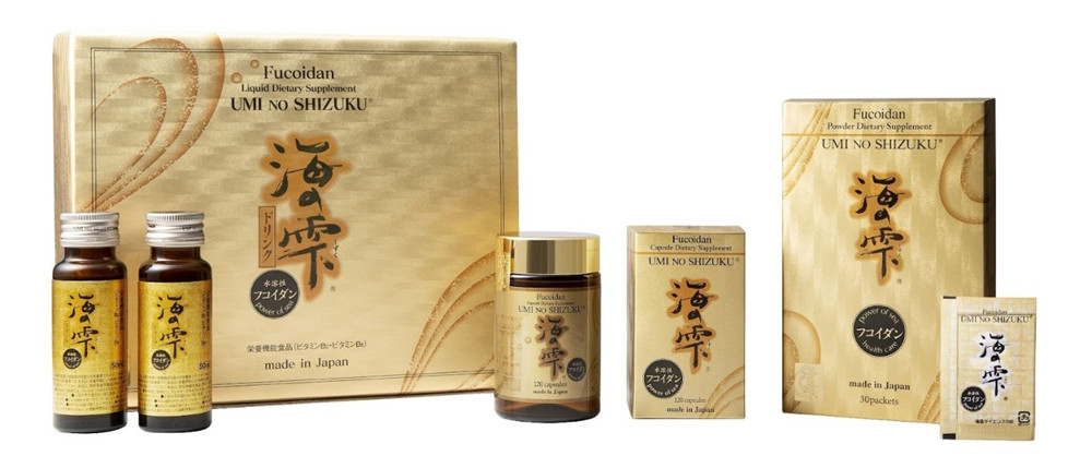 Fucoidan Umi No Shizuku được sản xuất 100% tại Nhật Bản và đã có mặt tại nhiều quốc gia, trong đó có Việt Nam. Sản phẩm được bào chế dưới 3 dạng bột, viên và nước, phù hợp mọi lứa tuổi, thích hợp cho người cần nâng cao sức đề kháng, người cần giảm tác hại do hóa trị, xạ trị.