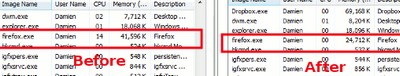 So sánh dung lượng RAM Firefox tiêu thụ trước và sau khi cài đặt Memory Fox.