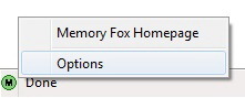 Để kích hoạt tính năng này của Memory Fox, kích chuột phải vào biểu tượng của phần mềm trên thanh trạng thái của Firefox (nằm ờ góc dưới bên trái), chọn Options.