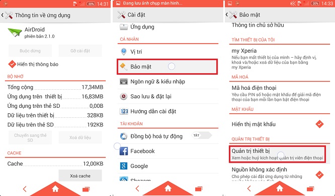 Để tắt quyền quản trị của ứng dụng, bạn có thể vào phần Cài đặt -> Bảo mật -> Quản trị thiết bị, nếu trong danh sách hiển thị ra có ứng dụng mà bạn muốn gỡ bỏ và có đánh dấu chọn ở phần bên phải, bạn chạm vào để tắt nó. Sau khi tắt quyền quản trị của ứng dụng đó, bạn có thể gỡ bỏ ứng dụng bình thường.