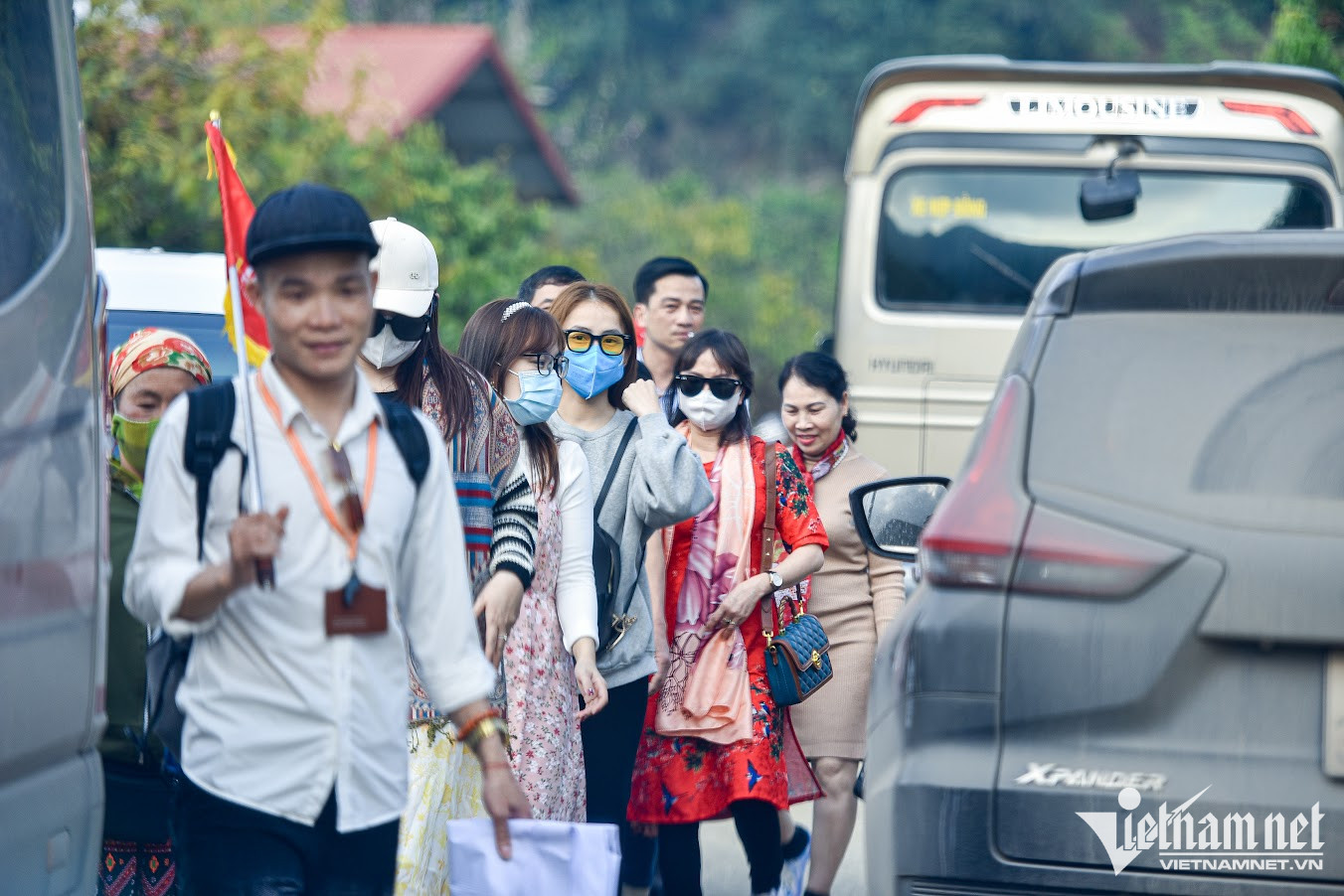 Con đường dẫn vào khu vực tập trung các vườn mận lớn của Nà Ka có một số đoạn cua khá hẹp, nên nhiều thời điểm xảy ra ùn tắc kéo dài. Nhiều nhóm du khách chấp nhận rời xe ô tô rồi đi bộ, lách qua dòng xe ùn ứ để vào vườn mận. Quãng đường di chuyển có thể dài tới gần 1km. "Tôi gửi xe ô tô ở xa, đi bộ hơn 1km vì sợ nếu tắc nghẽn lâu, trời sẽ tắt nắng, không kịp check-in cùng hoa mận. Khi tới vườn thì chân mỏi nhừ, mặt mũi ướt mồ hôi", Ngọc Hà (du khách từ Nam Định) chia sẻ