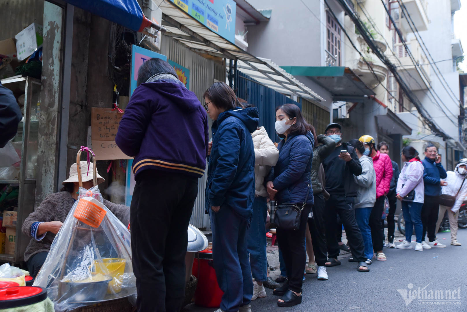 Trường Đăng (25 tuổi, quê Hà Nam) đi khá xa tới quán và phải xếp hàng gần 30 phút giữa thời tiết đầu đông. "Xếp hàng lâu nhưng mình thấy cũng bình thường thôi, không khó chịu, bực bội gì. Muốn ăn ngon thì đứng một chút cũng xứng đáng. Có những người xếp hàng cả tiếng mà đến lượt thì hết bánh người ta cũng vui vẻ đi về thôi”, Đăng cho hay.