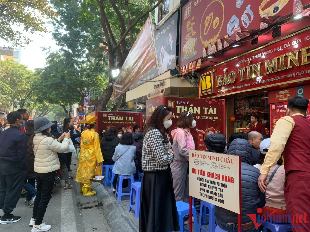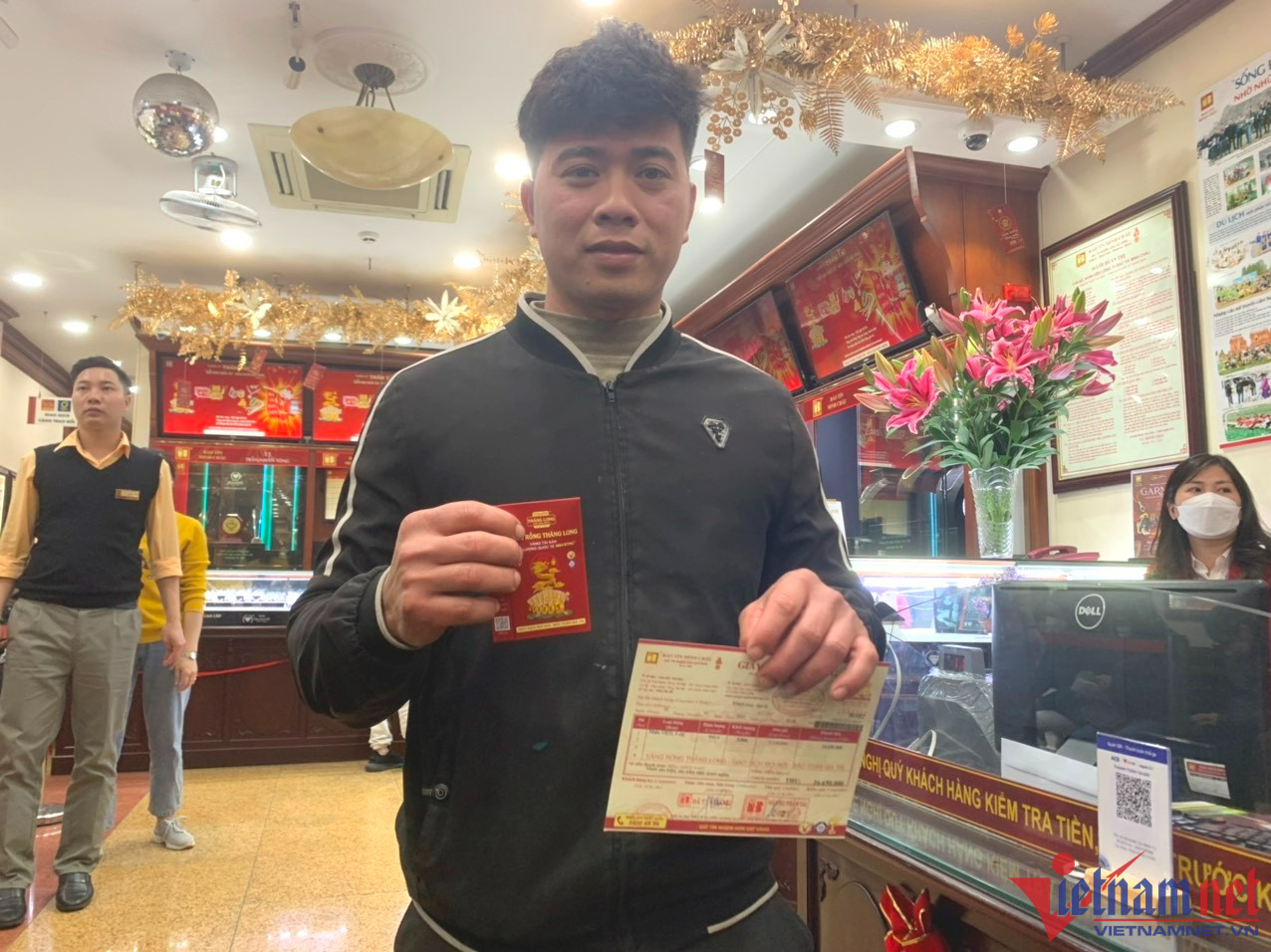Chia sẻ với PV. VietNamNet, anh T. ở Mê Linh cho biết, anh đi bán hàng từ 2h sáng ở phố Bạch Mai, đến gần 11h trưa tranh thủ lên hiệu vàng ở Trần Nhân Tông mua 3 chỉ về lấy may.