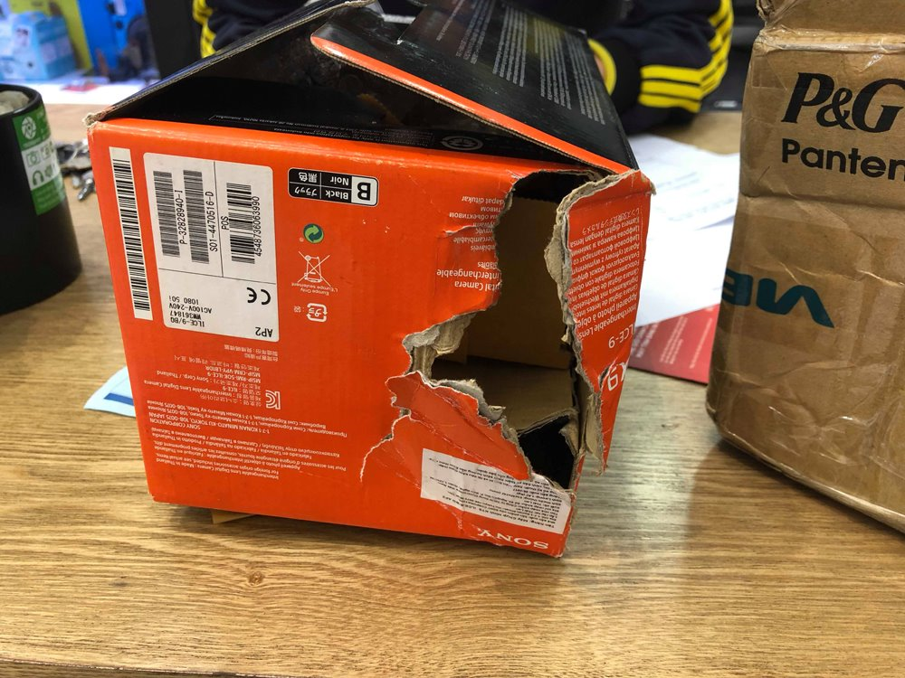 “Chiếc máy ảnh bị móc trộm, hộp bị rạch nát một góc và được dán băng dính chằng chịt, nhẹ bẫng một cách bất thường như vậy nhưng phía công ty chuyển phát vẫn cho người mang đến giao hàng cho tôi như bình thường”, anh Bình bức xúc.