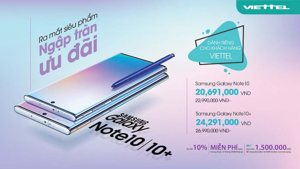 Theo đó, các tín đồ công nghệ chỉ cần lấy mã code giảm giá trên ứng dụng MyViettel để được hưởng ưu đãi mua Samsung Note 10 với giá chỉ còn 20.691.000 đồng, và Note 10+ với giá 24.291.000 đồng trên trang website chính hãng của Samsung tại https://shop.samsung.com/vn/multistore/vnepp/viettelcustomer/. Đây là mức ưu đãi trực tiếp tốt nhất cho khách hàng trên thị trường cho tới thời điểm hiện tại, hỗ trợ khách hàng Viettel có cơ hội mua siêu phẩm mới nhất của Samsung với nhiều khuyến mại độc quyền.