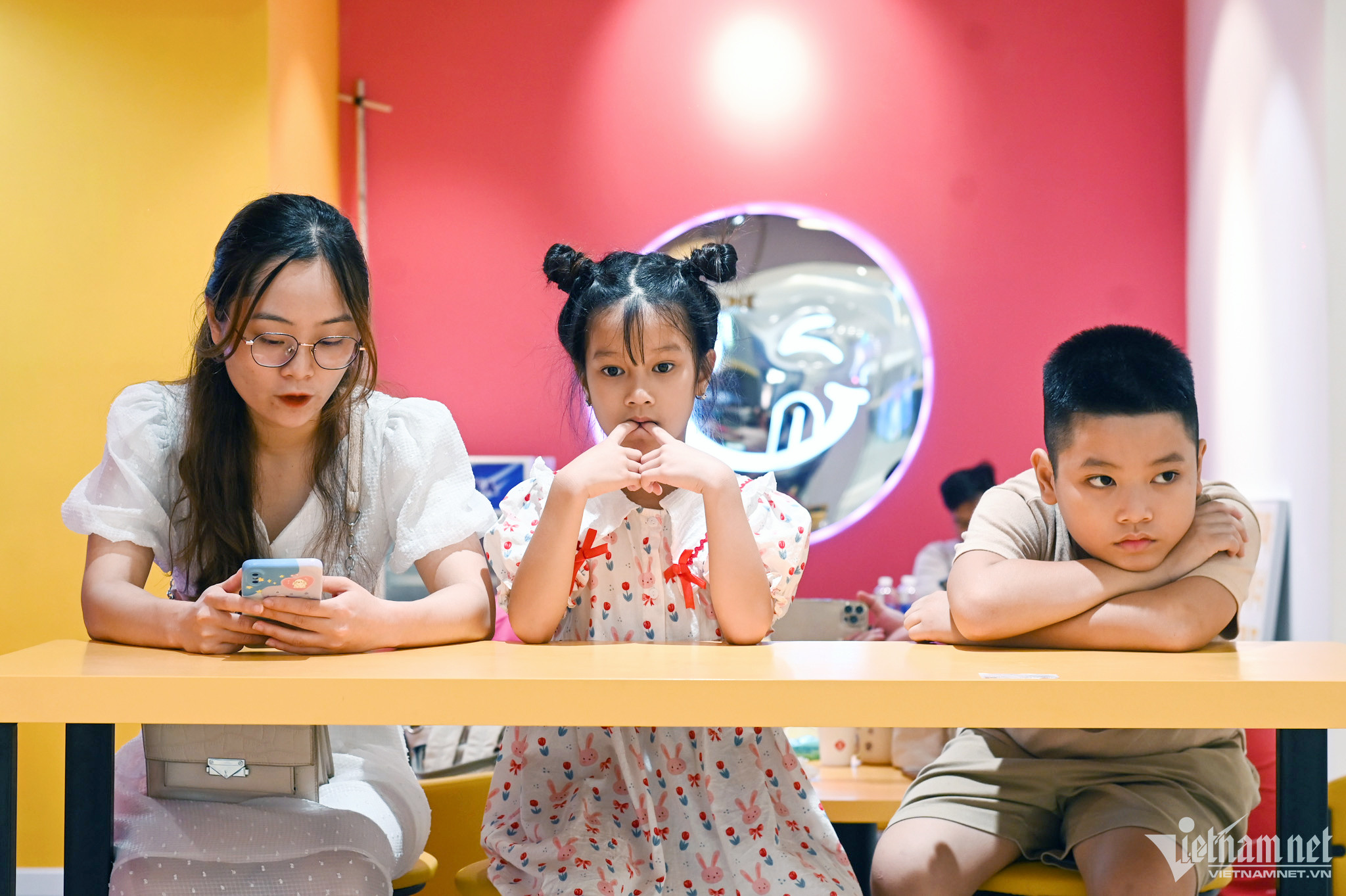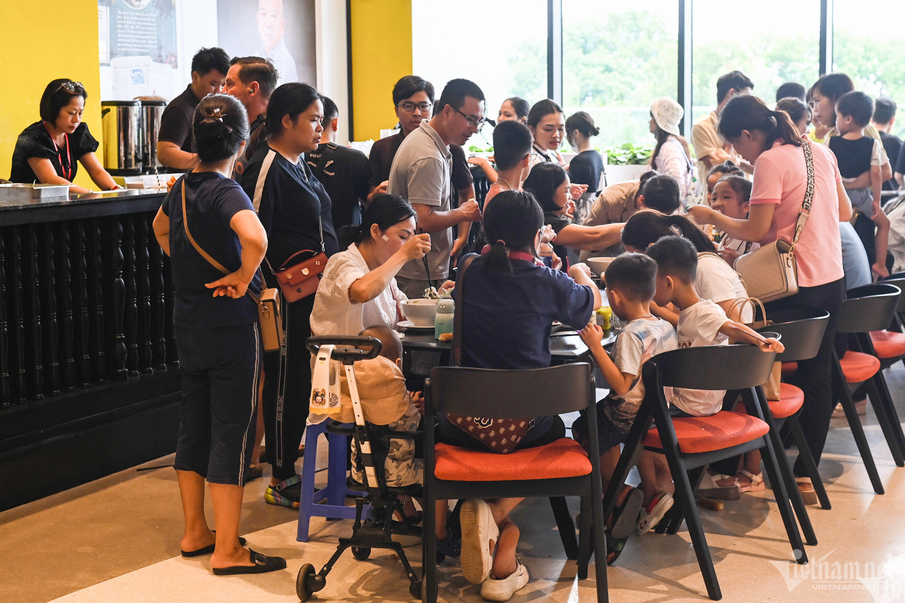 Phần lớn các hàng ăn tại đây đều chật kín chỗ ngồi. Nhiều gia đình dẫn con nhỏ đi chơi, ăn uống gặp một số bất tiện.