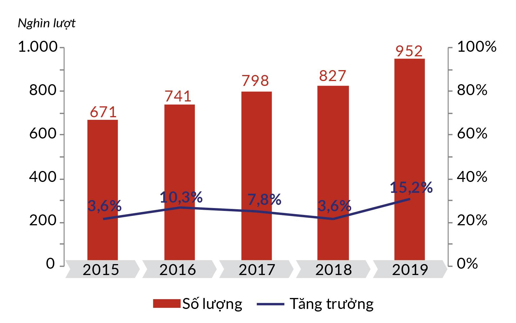 Giai đoạn 2015-2019, khách Nhật Bản đến Việt Nam tăng 1,4 lần, từ 671.000 lượt (năm 2015) lên 952.000 lượt (năm 2019), mức tăng bình quân đạt 9,1%/năm.