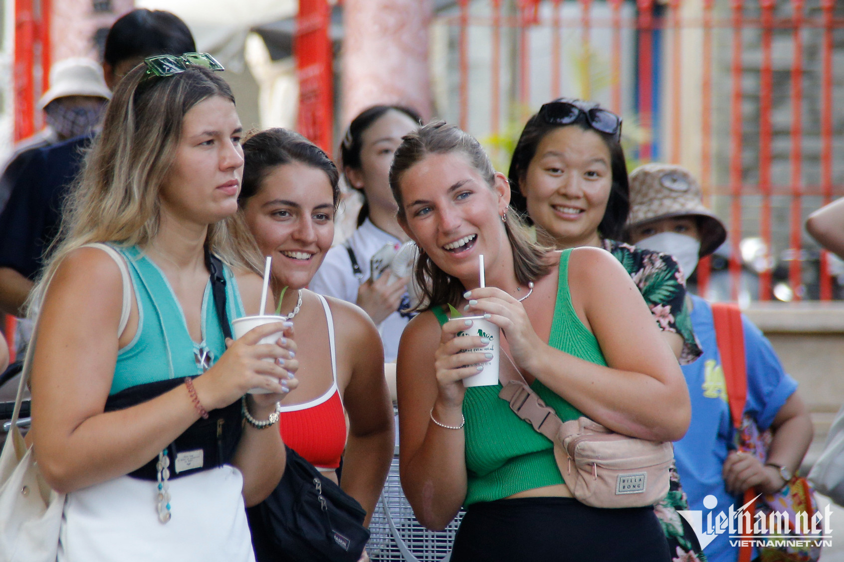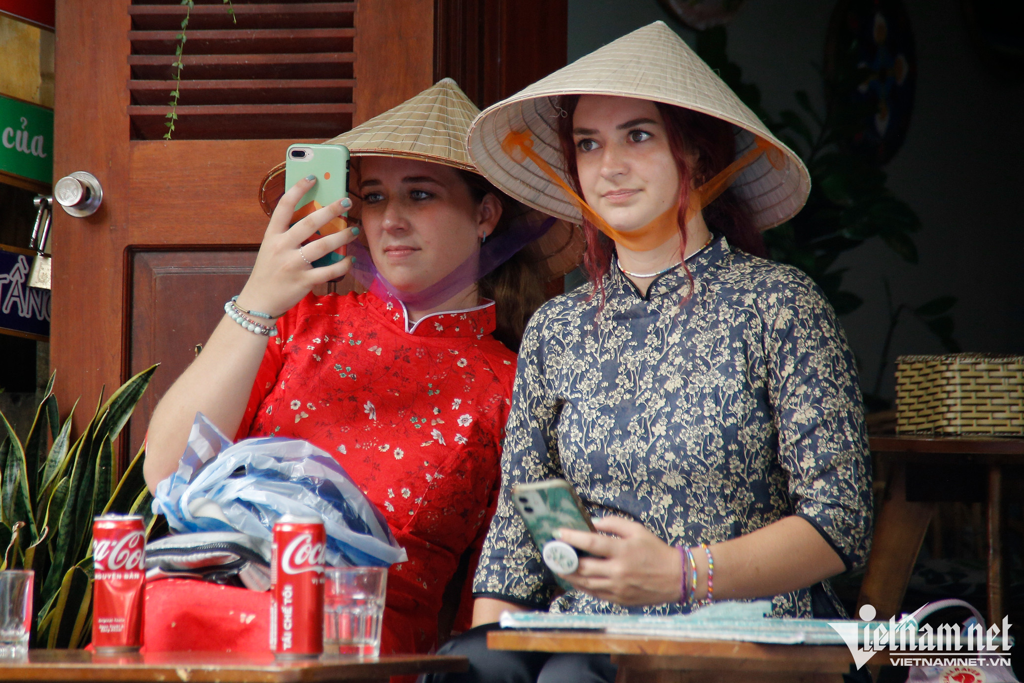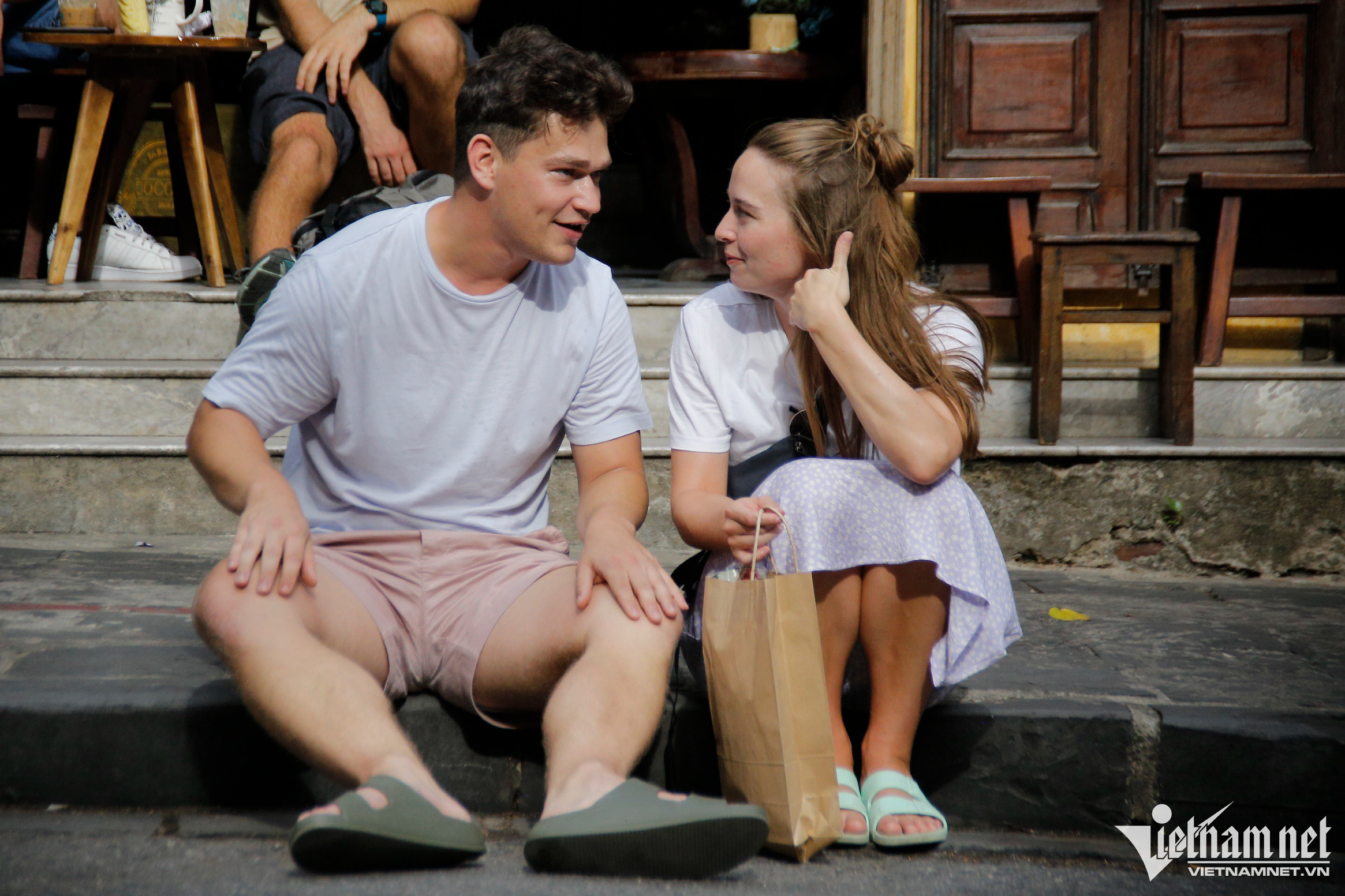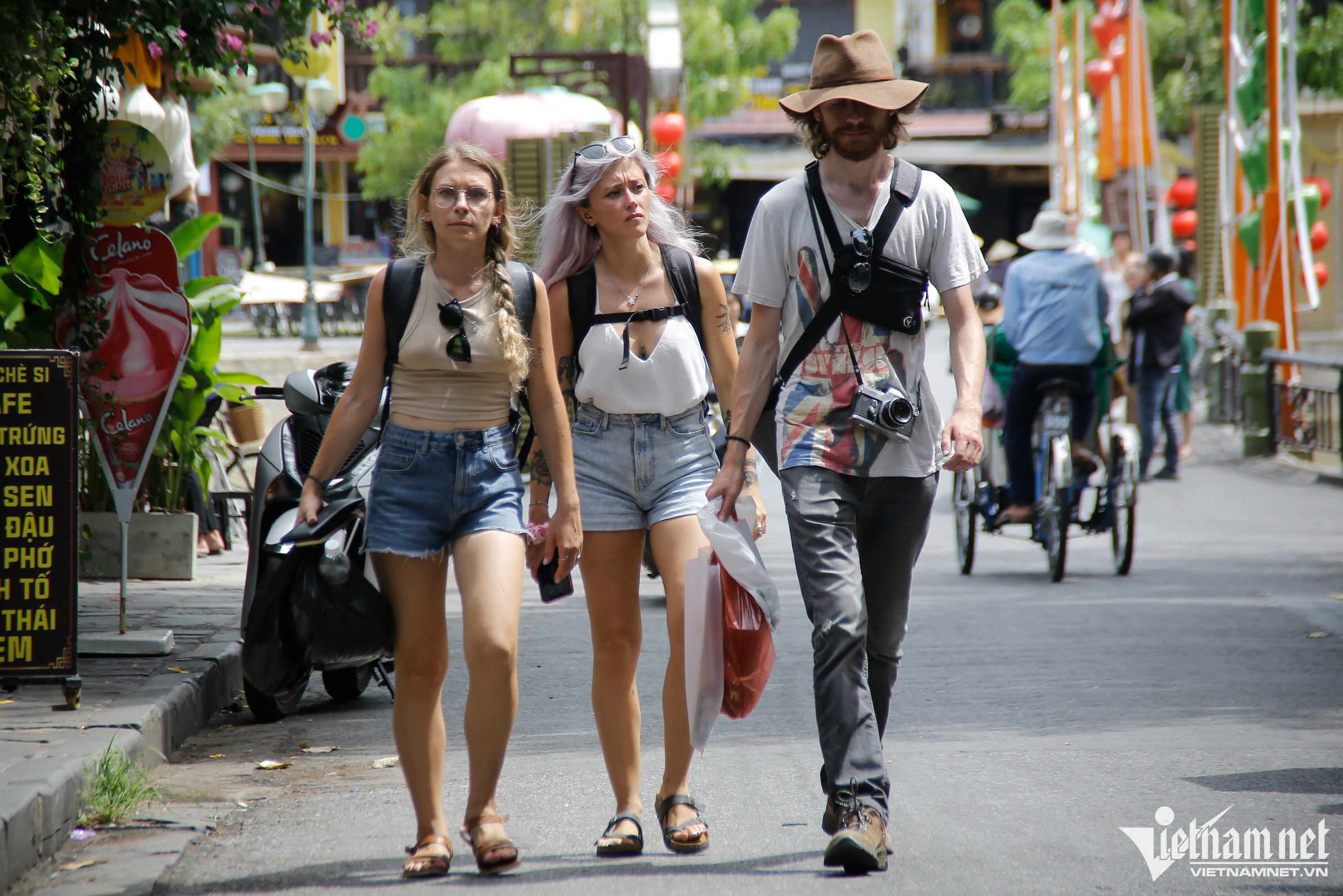 Trên các con phố như Trần Phú, Nguyễn Thái Học, Bạch Đằng, nhiều du khách quốc tế tham dạo chơi những ngày cuối tháng 8. Trong ảnh, đoàn du khách gồm 8 người đến từ Anh và Úc đang trong hành trình vòng quanh Việt Nam.Ông Vernon (60 tuổi, đến từ Úc), thành viên của đoàn cho biết, ông đến Việt Nam từ ngày 20/8. Trước khi đến Việt Nam ông có ghé Campuchia. “Sau đại dịch Covid-19 tôi muốn đi du lịch để lấy lại năng lượng. Tôi đã đi qua Bến Tre, Củ Chi, Ninh Thuận, riêng Hội An tôi rất thích. Nơi đây thực sự yên bình, cảm giác như đi nghỉ ngơi hơn”, ông Vernon nói.Đi du lịch cùng với bạn gái của mình, anh Lorine (25 tuổi, đến từ Bỉ) tỏ ra hồ hởi. Bản thân anh thực sự ấn tượng với những lồng đèn tại phố cổ. Đối với các món ăn ở đây, mì quảng rất hấp dẫn đối với anh.Lorine tham gia cuộc thi đẩy gậy cùng một thanh niên Việt Nam trên phố Châu Thượng Văn. Khi giành được chiến thắng, anh rất hứng khởi khi được tặng một chiếc đèn lồng. “Đối thủ rất mạnh, tôi giành được chiến thắng là do may mắn. Vì chưa quen với cách đẩy nên tôi khá đau tay và hông. Thực sự không khí ở đây như một lễ hội”, Lorine chia sẻ.Đến Việt Nam cách đây 10 ngày, chị Sara Melotti (34 tuổi, người Italy, ngoài cùng bên trái) cùng 3 người bạn chọn Hội An là điểm du lịch tiếp theo sau TP.HCM. Ở Hội An chị rất thích nước mót, vị của nó thanh thanh, tạo cảm giác hứng khởi trong cái nóng miền Trung.Hai người bạn Sydnee (24 tuổi, bìa phải) và Abby (19 tuổi, bìa trái, cùng đến từ Mỹ) đang mặc trên mình bộ áo dài truyền thống. “Mình chọn áo dài để mặc dạo phố vì thực sự nó rất đẹp. Mình muốn đưa hình ảnh áo dài truyền thống Việt Nam khi trở về quê hương, khoe với bạn bè nét văn hóa và trang phục rất ấn tượng này”, Sydnee nói.Anh Rouston (27 tuổi, người Ấn Độ) lại thích thú với gánh hoa quả trên phố cổ. Anh thấy lạ khi ở đây người dân gánh hoa quả đi bán, thường ở quê hương anh người ta sẽ để trên sạp. Sau khi thấy gánh hàng này anh liền xin cô chủ chụp nhờ một bức hình để lưu lại làm kỷ niệm.Theo Phó Giám đốc Sở VHTT&DL Quảng Nam Văn Bá Sơn, số lượt khách du lịch quốc tế đến đây vẫn chưa phục hồi so với thời điểm trước dịch, tuy nhiên, sau khi chính sách mở cửa lại, trong tháng 7 và 8/2022 ước đạt 187.000 lượt người, tăng gấp 20 lần so với 3 tháng đầu năm 2022.