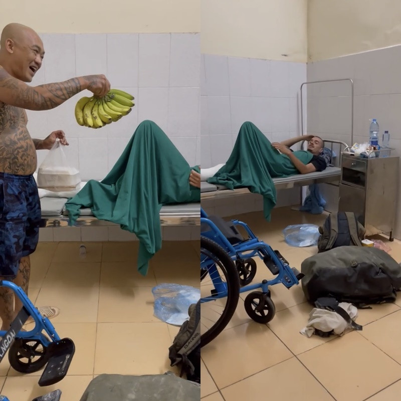 Thấy tình cảnh của du khách, anh Tiến Bảo cùng gia đình sau đó chủ động đến thăm hỏi, động viên. Anh còn bỏ tiền túi mua hoa quả, cơm hộp, bánh trái và hỗ trợ sim 4G điện thoại để người này có thể yên tâm, thoải mái nằm viện.