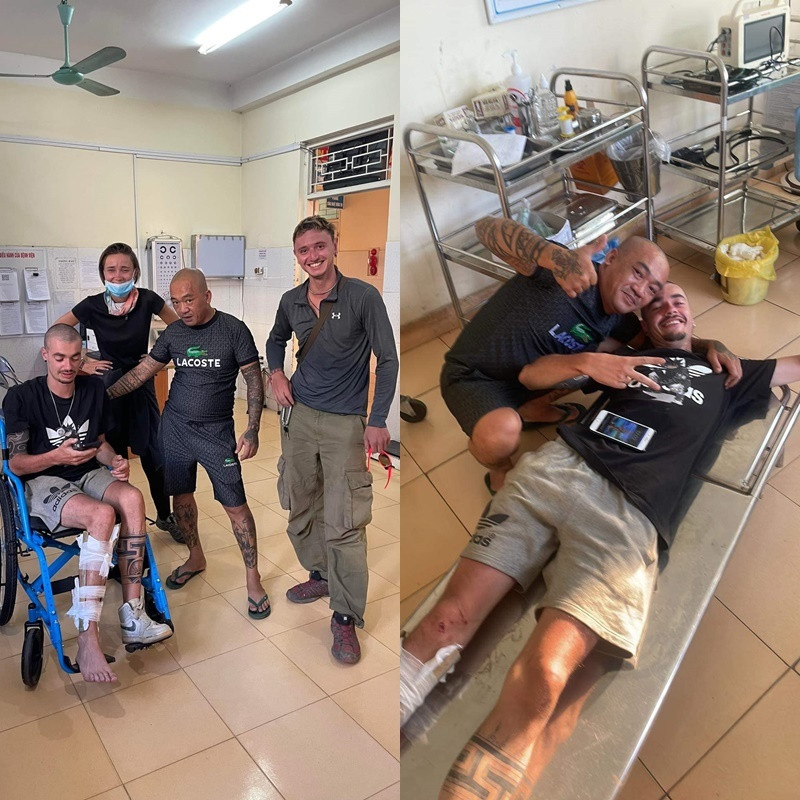 Vị khách gặp nạn dù bị thương nhưng luôn nở nụ cười thể hiện sự biết ơn đối với gia đình anh Bảo. Họ còn chụp chung với nhau những bức hình để làm kỉ niệm.