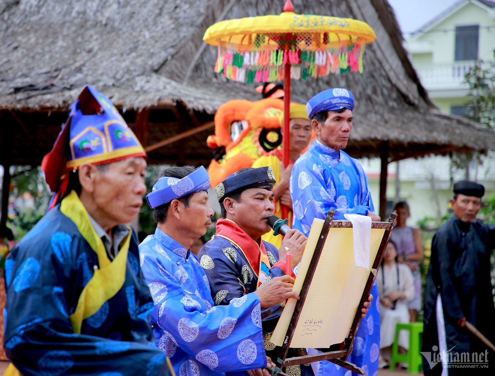 Lễ vật được dâng lên, các bô lão trong làng thực hiện nghi thức cúng bái, tưởng nhớ công đức của các bậc tiền nhân đã khai phá tạo lập nên làng; đồng thời cầu quốc thái dân an.