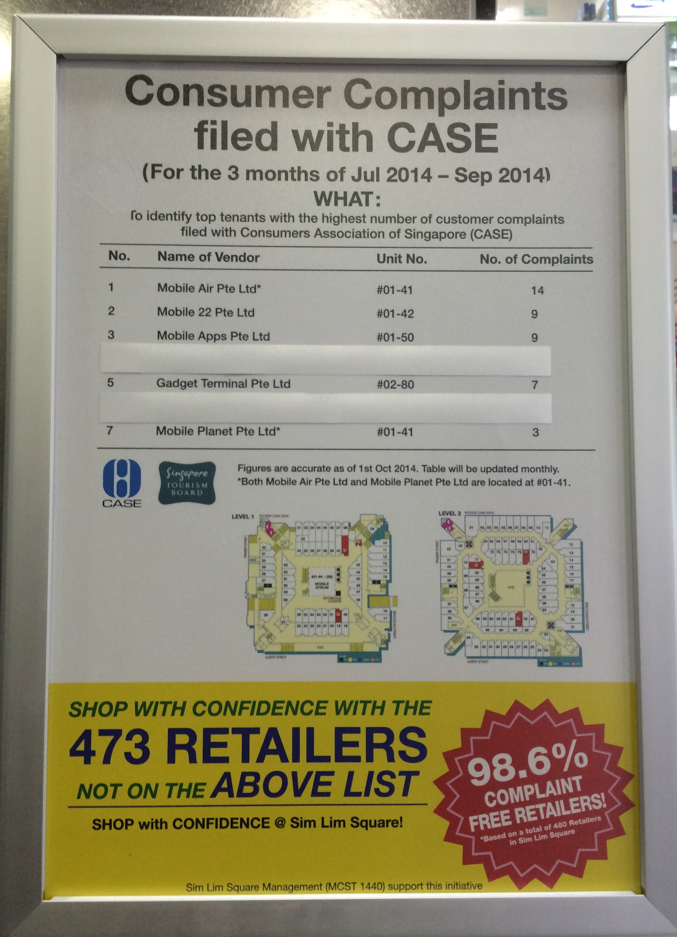 Các chủ cửa hàng tại Sim Lim Square cũng hợp tác với Case để treo danh sách cảnh báo những nhà bán lẻ làm ăn thiếu uy tín. Theo ông Seah, từ 100 vụ của năm 2013, đến tháng 10/2014 đã giảm còn 80 vụ. Dù vậy, dường như cách này vẫn chưa đủ sức răn đe và Case đang tìm kiếm các biện pháp tiếp theo.